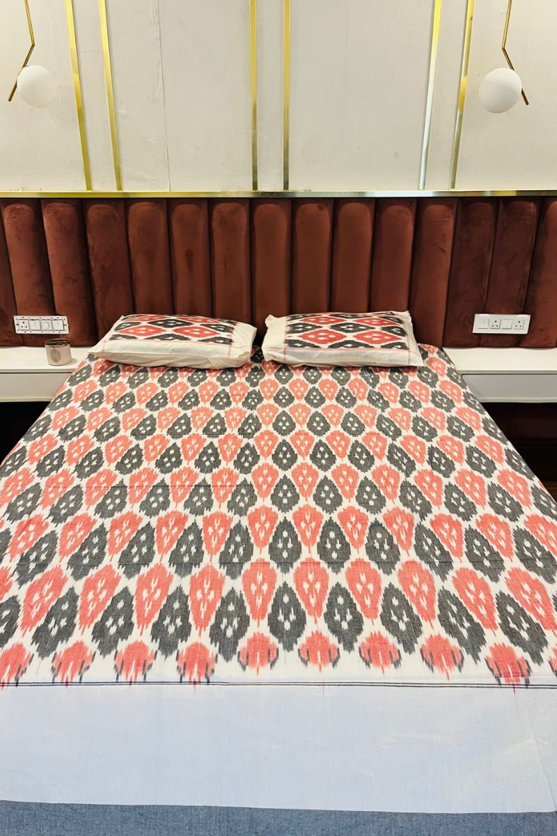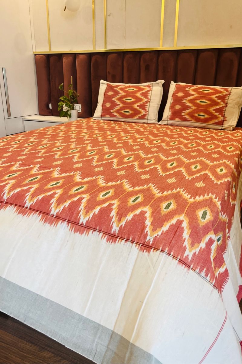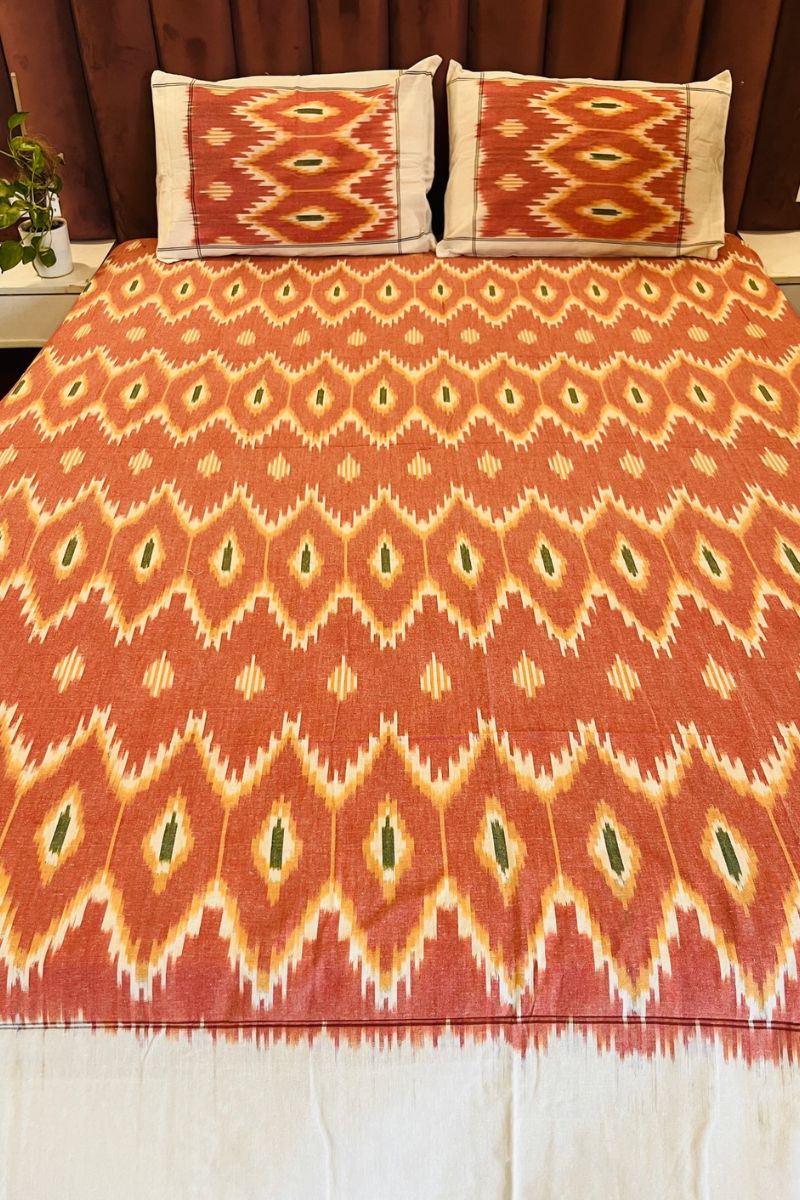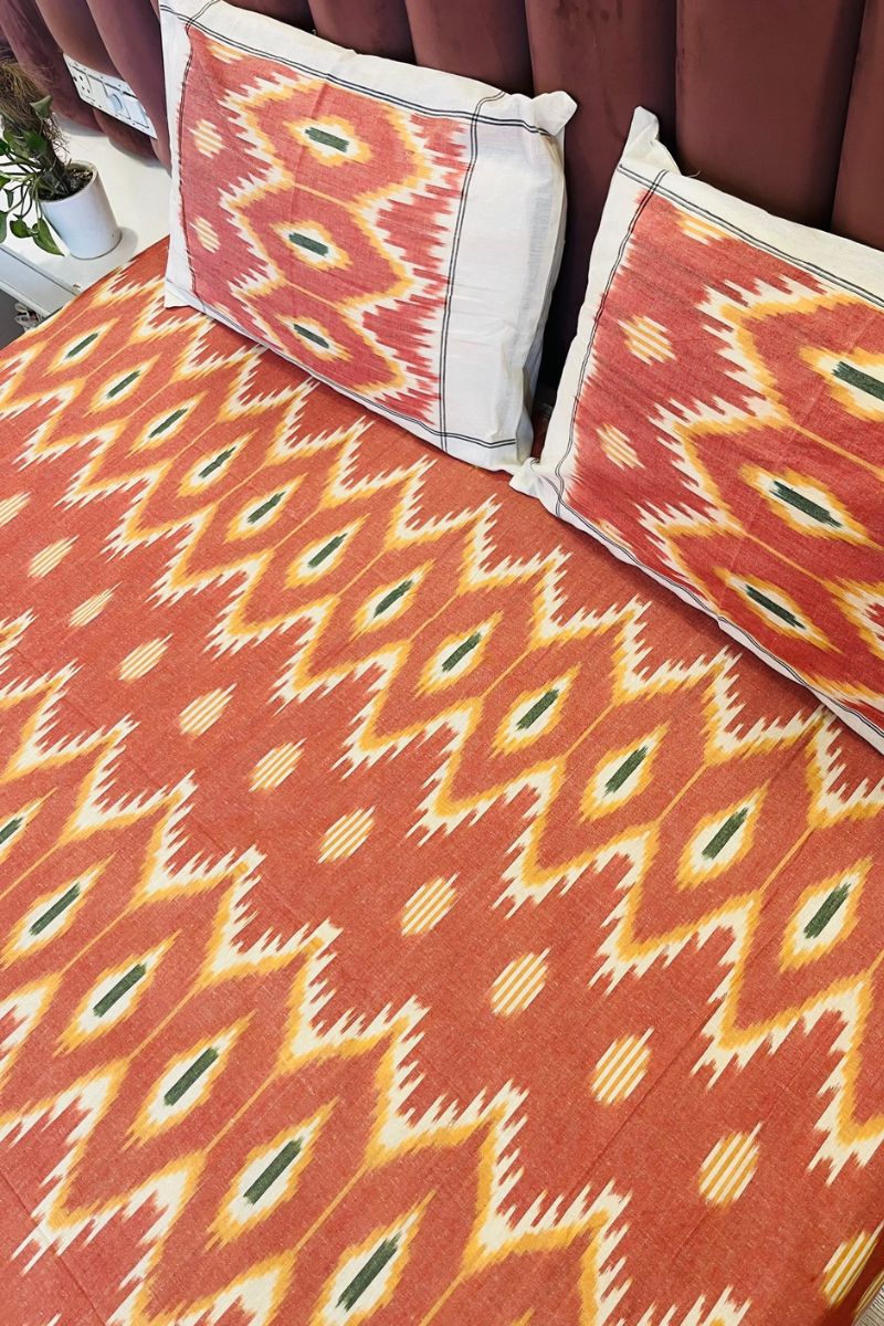 Tangerine Ikat Double Bed Sheet (90X108)