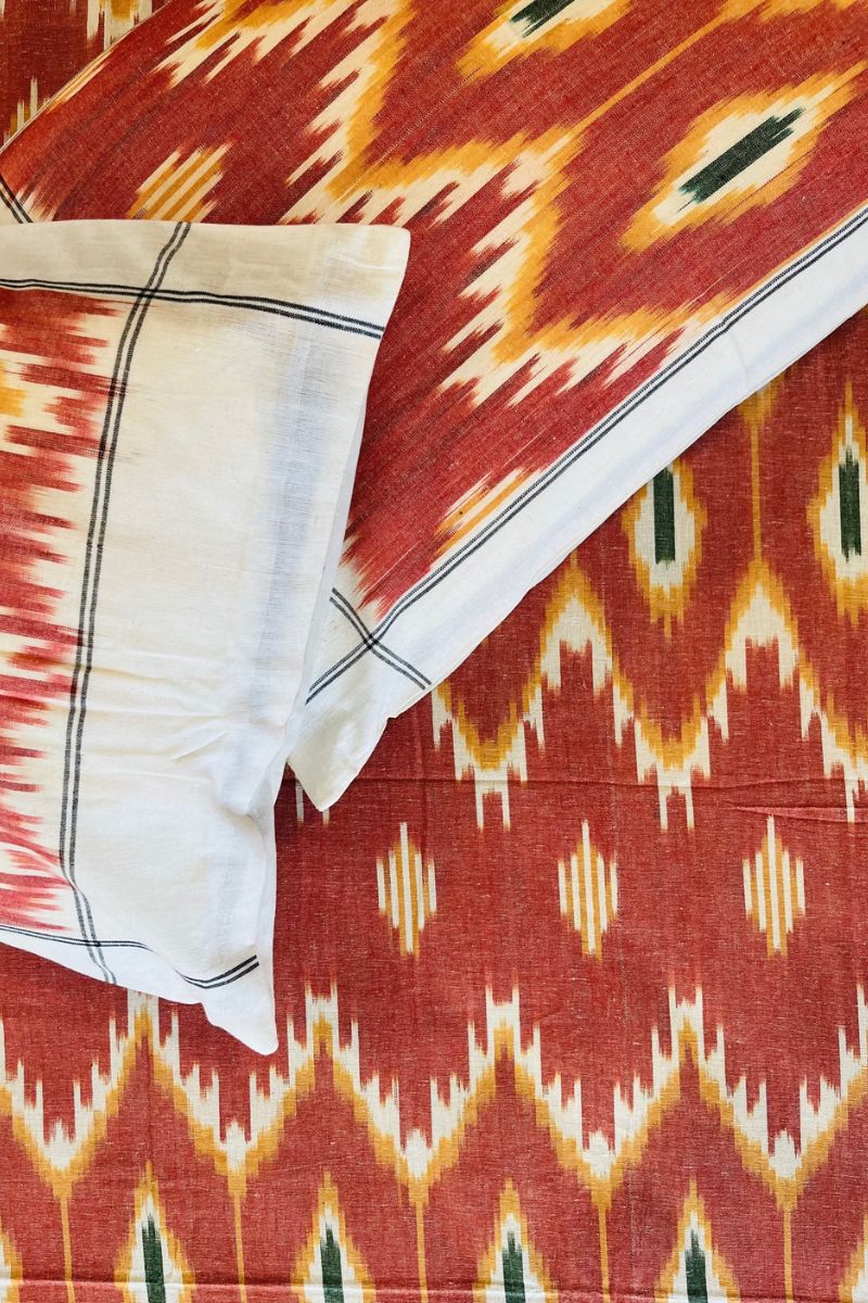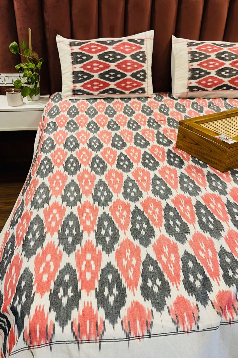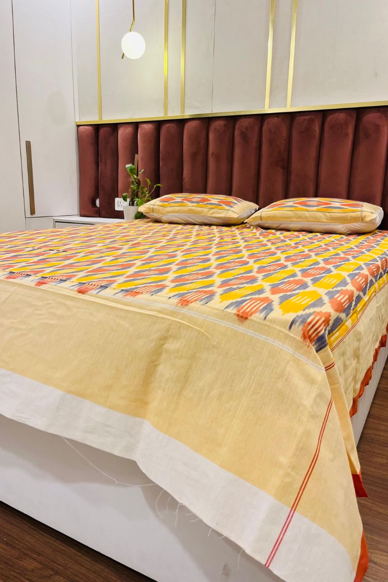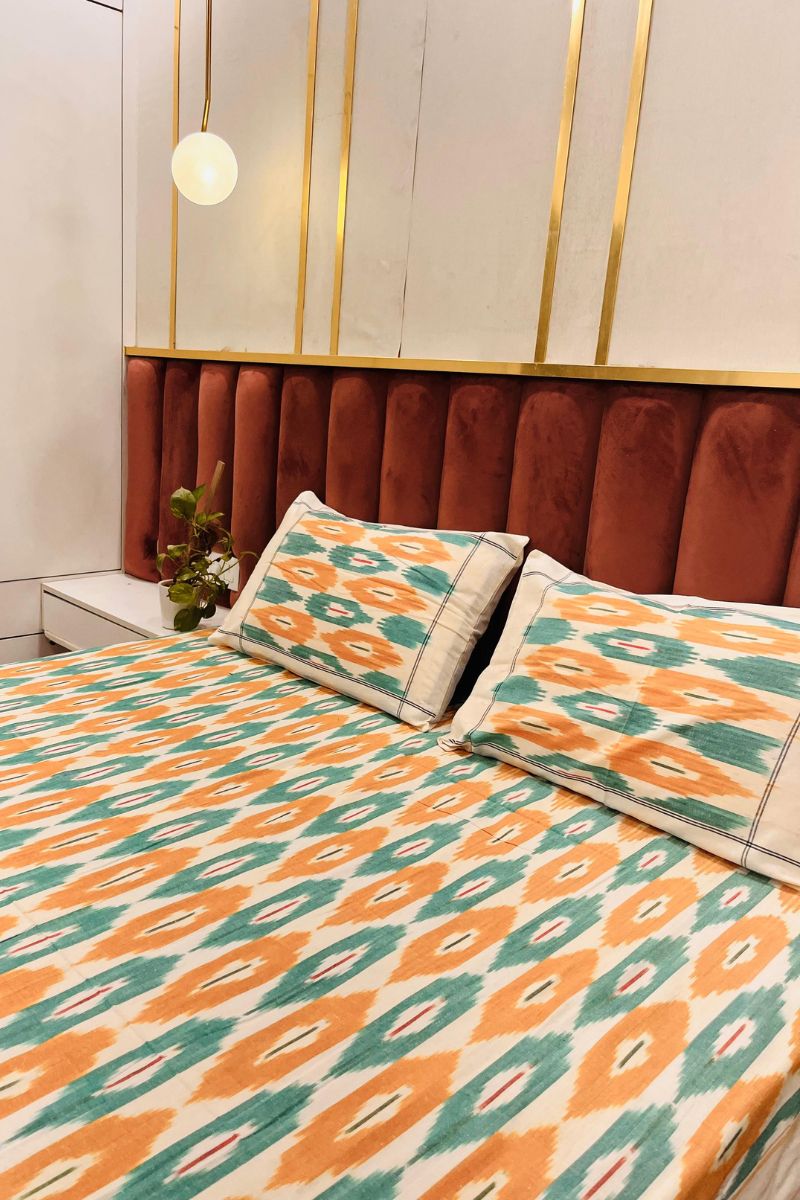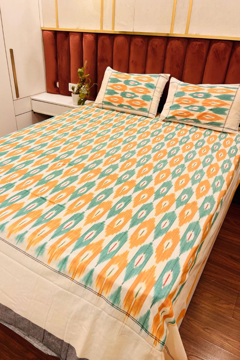 Tangerine Ikat Double Bed Sheet (90X108)