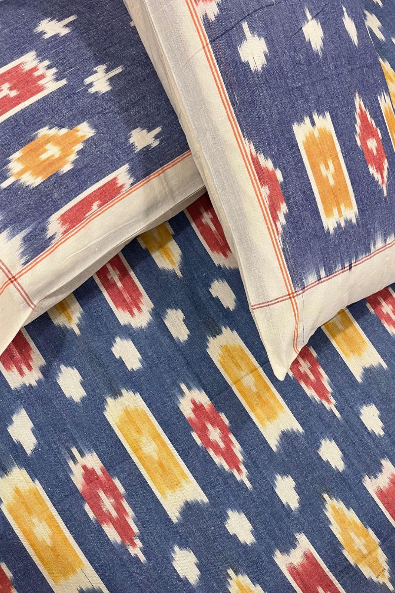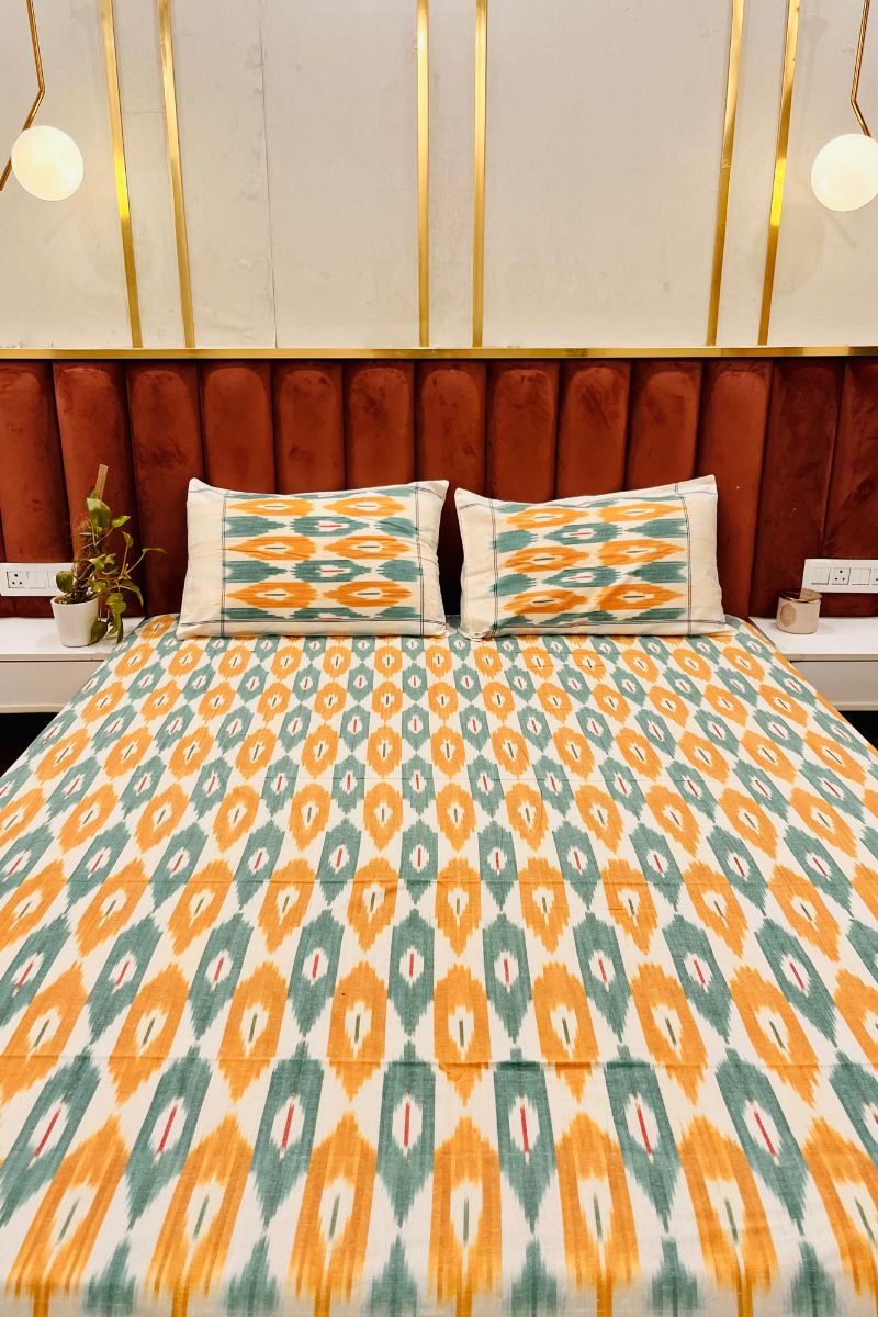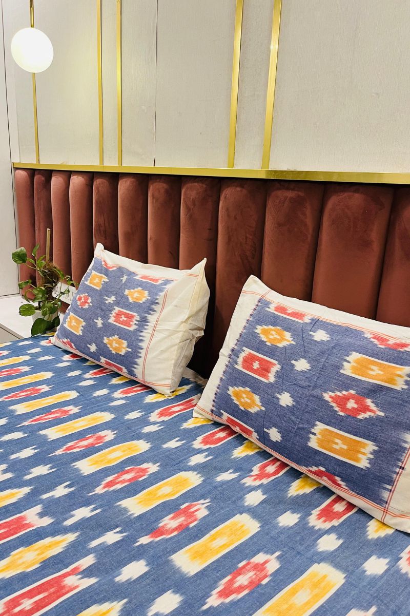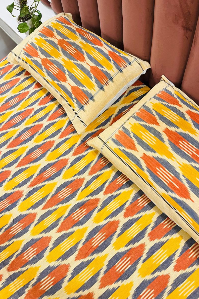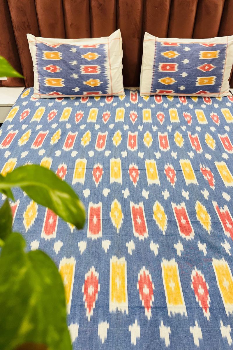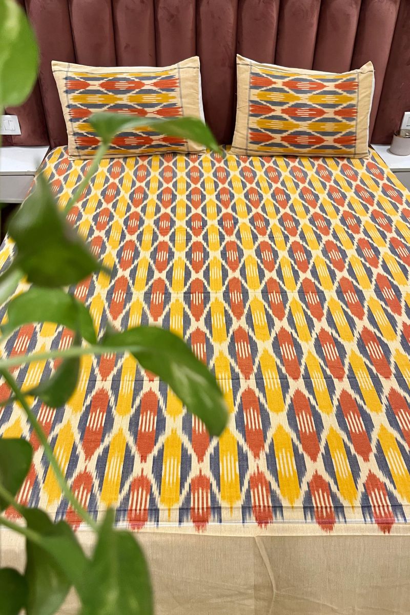 Yellow Blue Ikat Double Bedsheet (90X108)