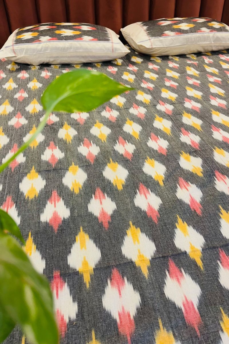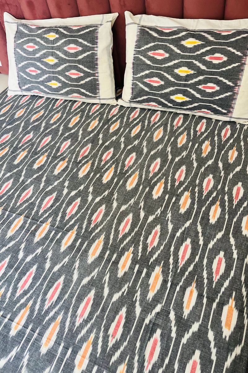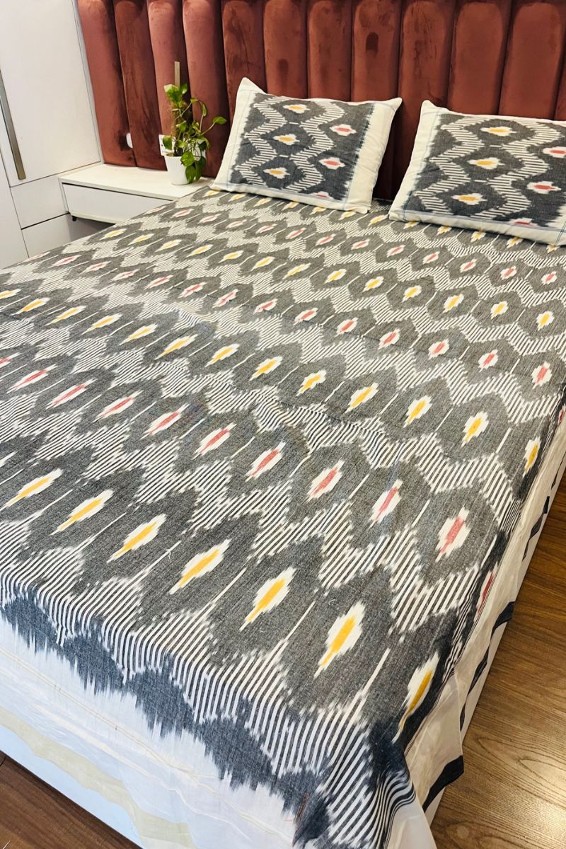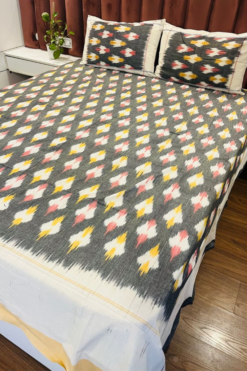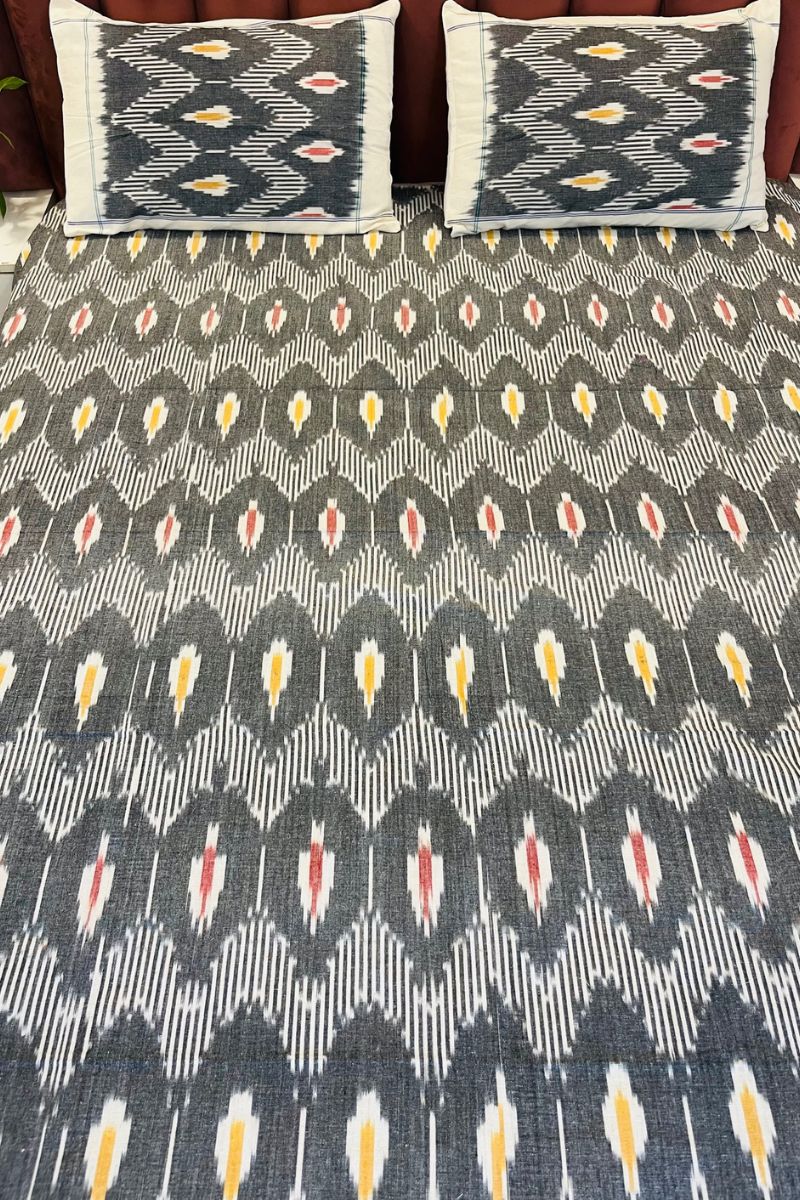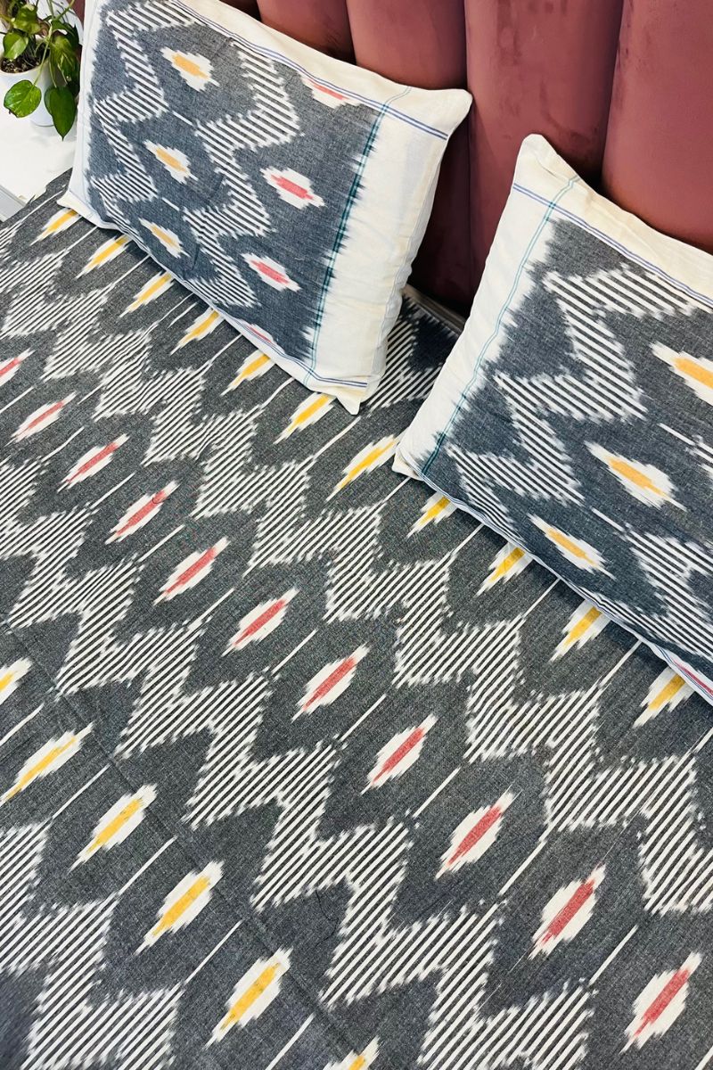 Grey Melange Ikat Double Bed Sheet (90X108)