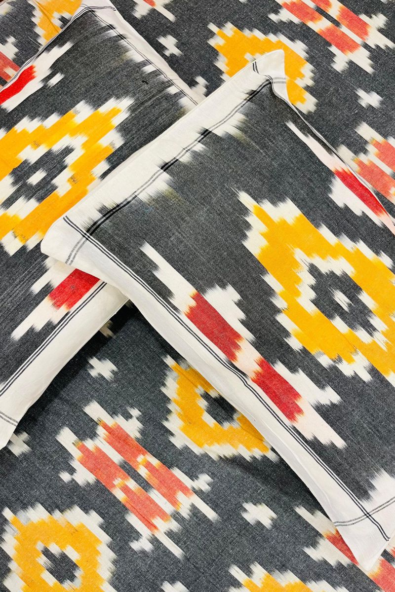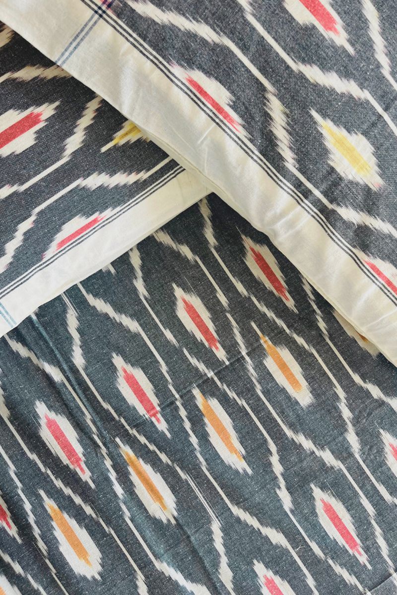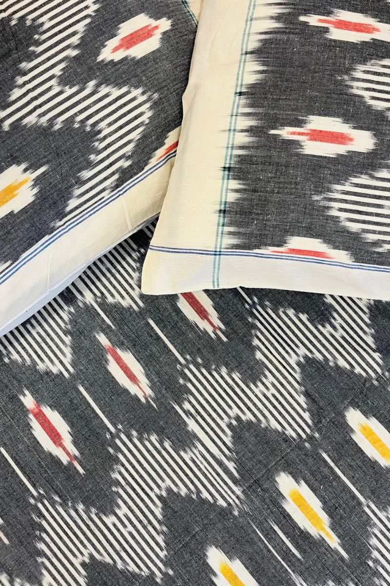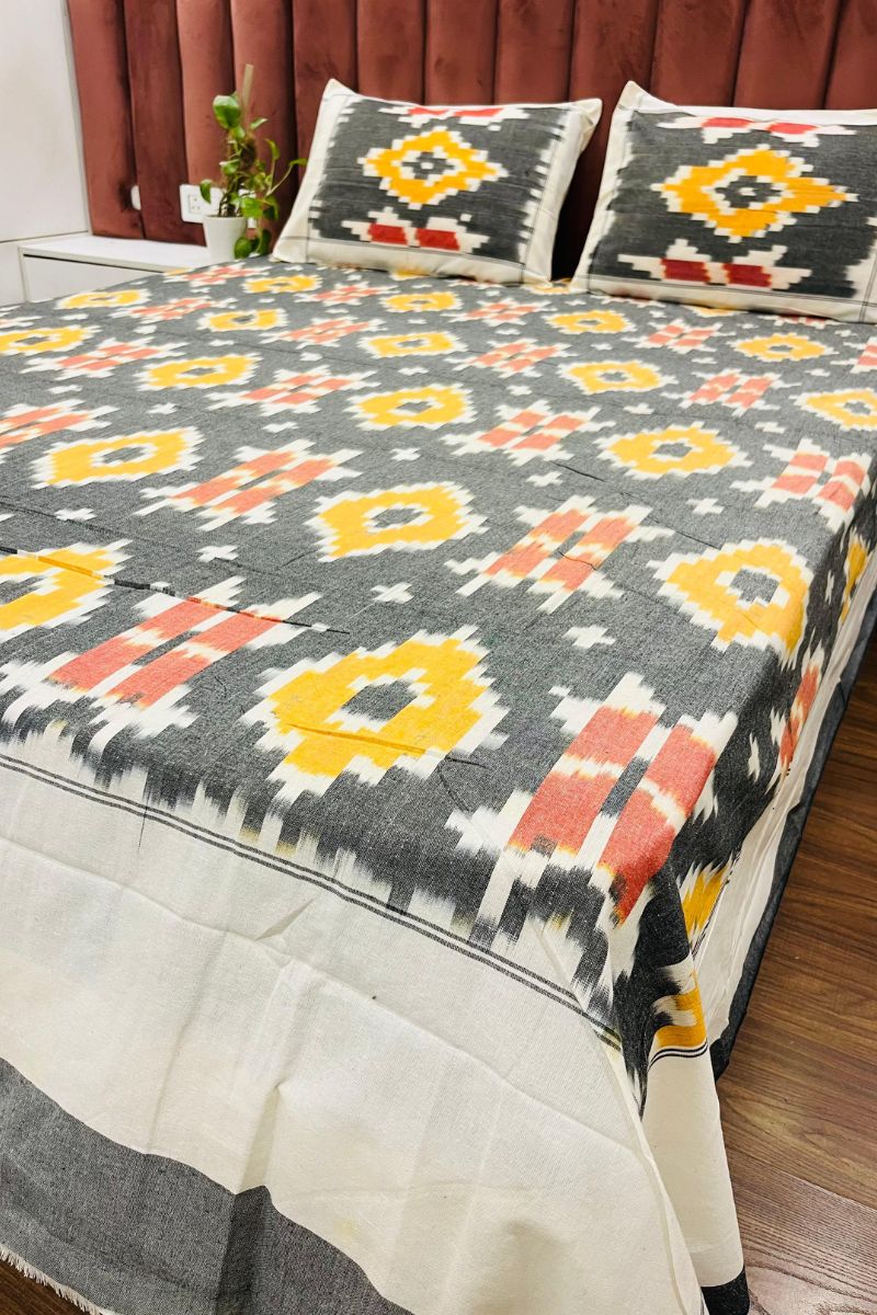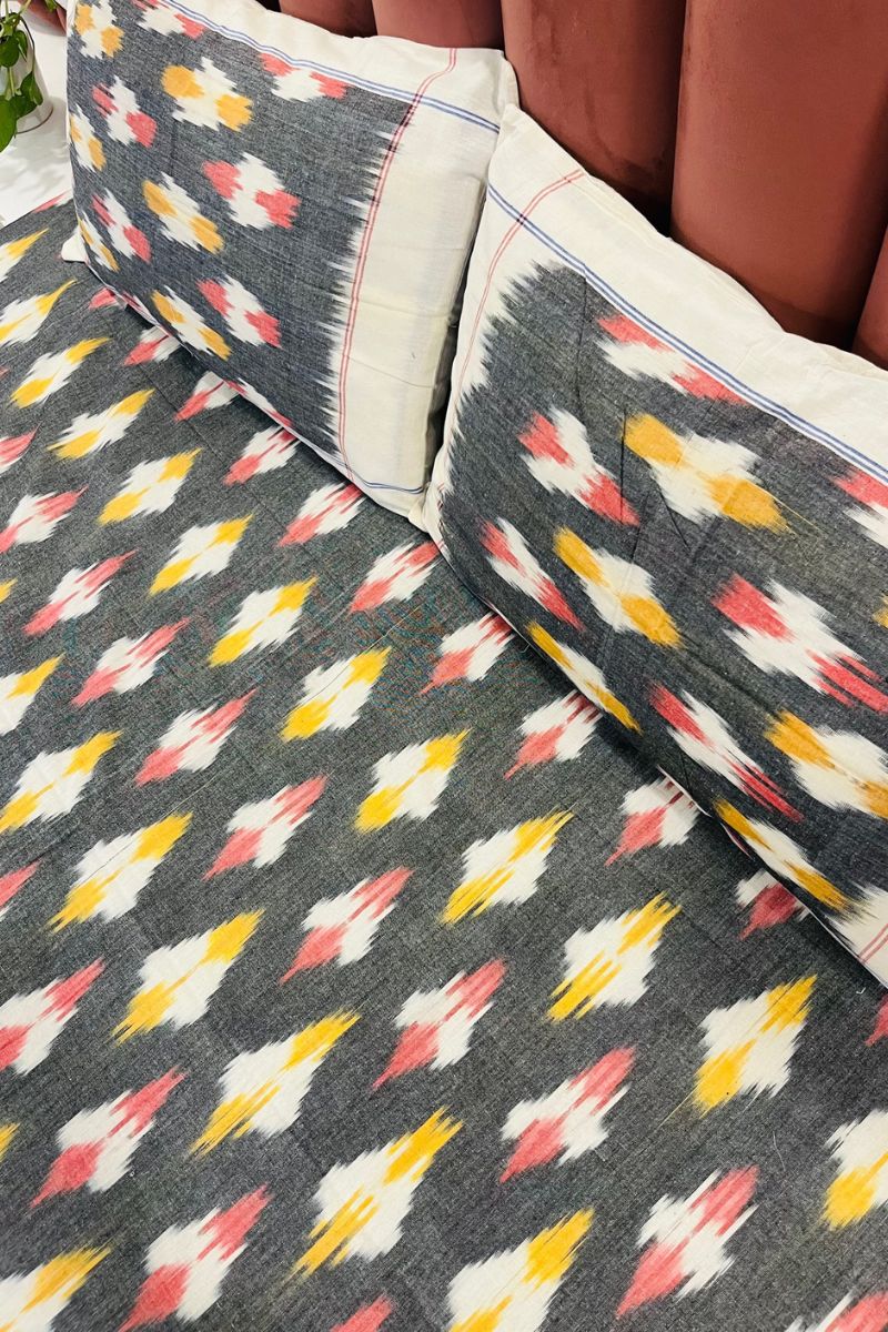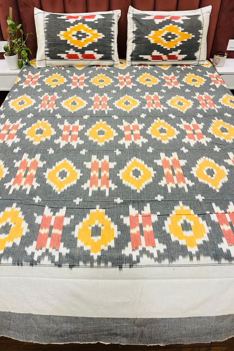 Grey Melange Ikat Double Bed Sheet (90X108)