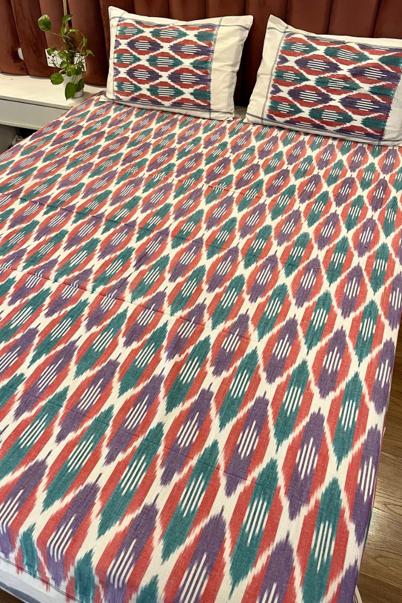 Multicolor Ikat Double Bedsheet (90X108)