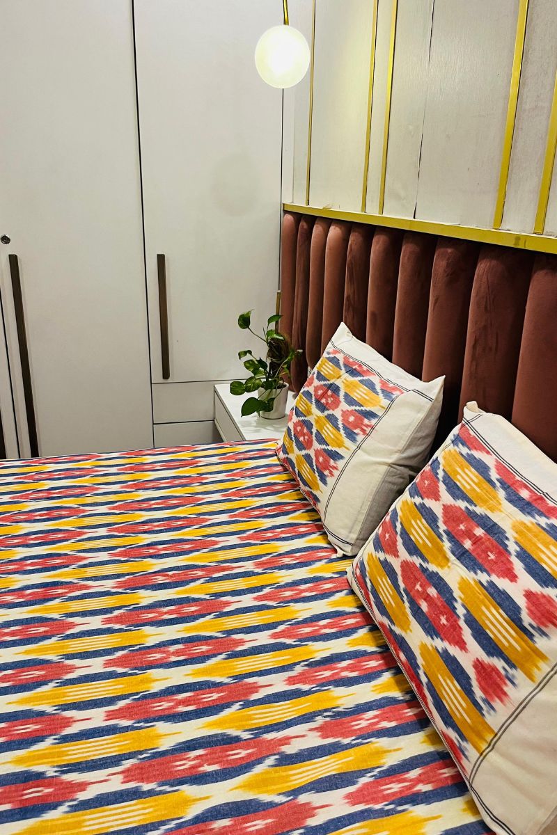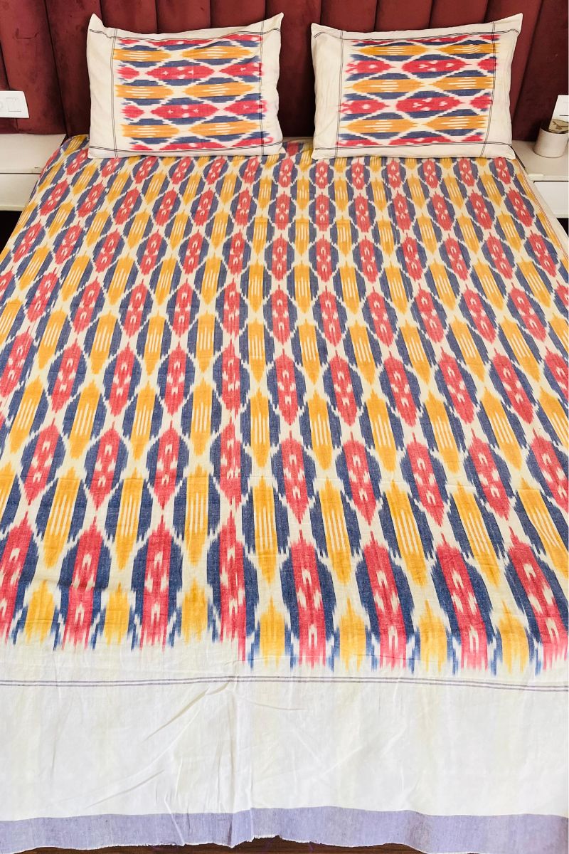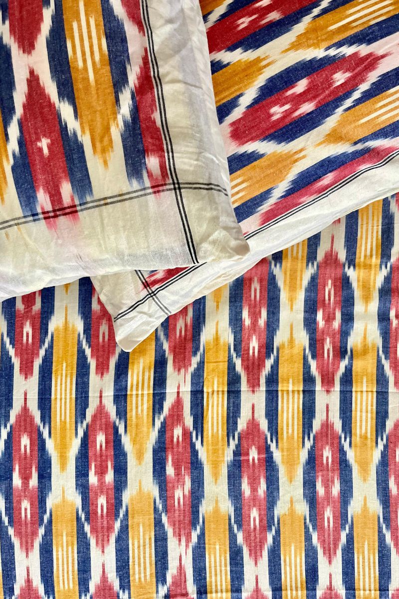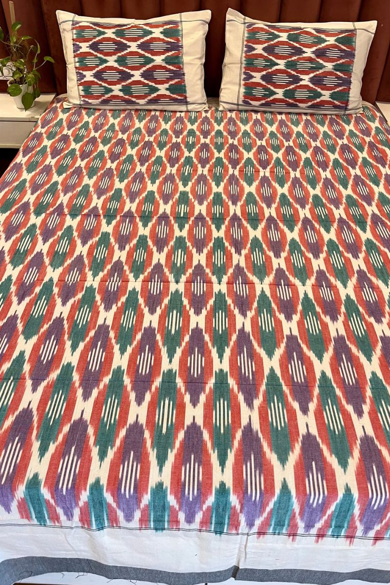 Multi-Color Ikat Double Bed Sheet (90X108)