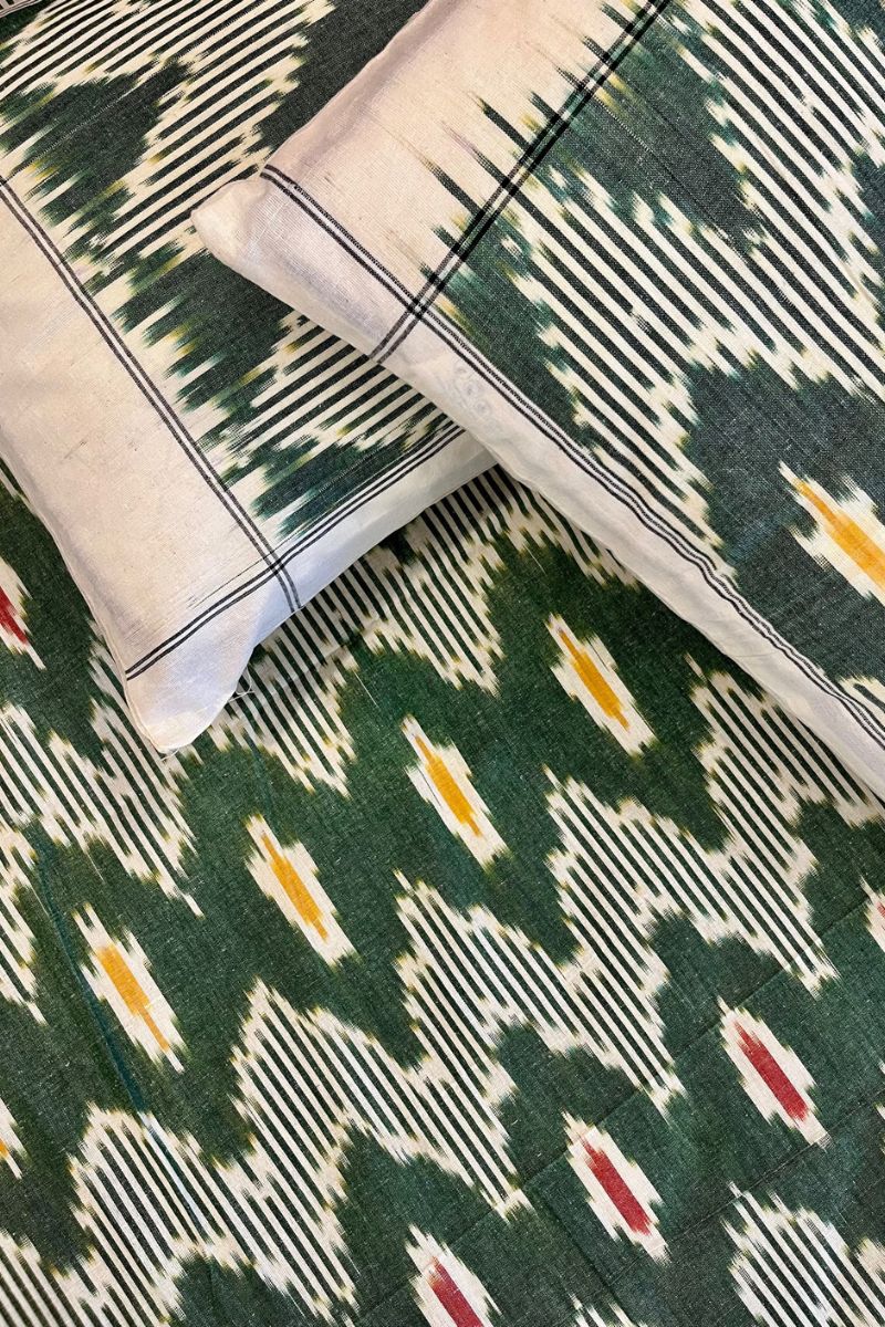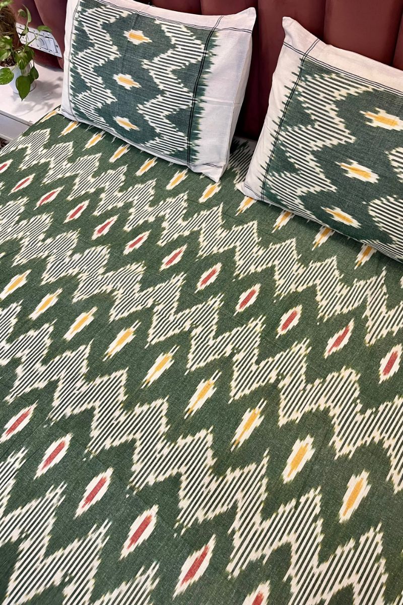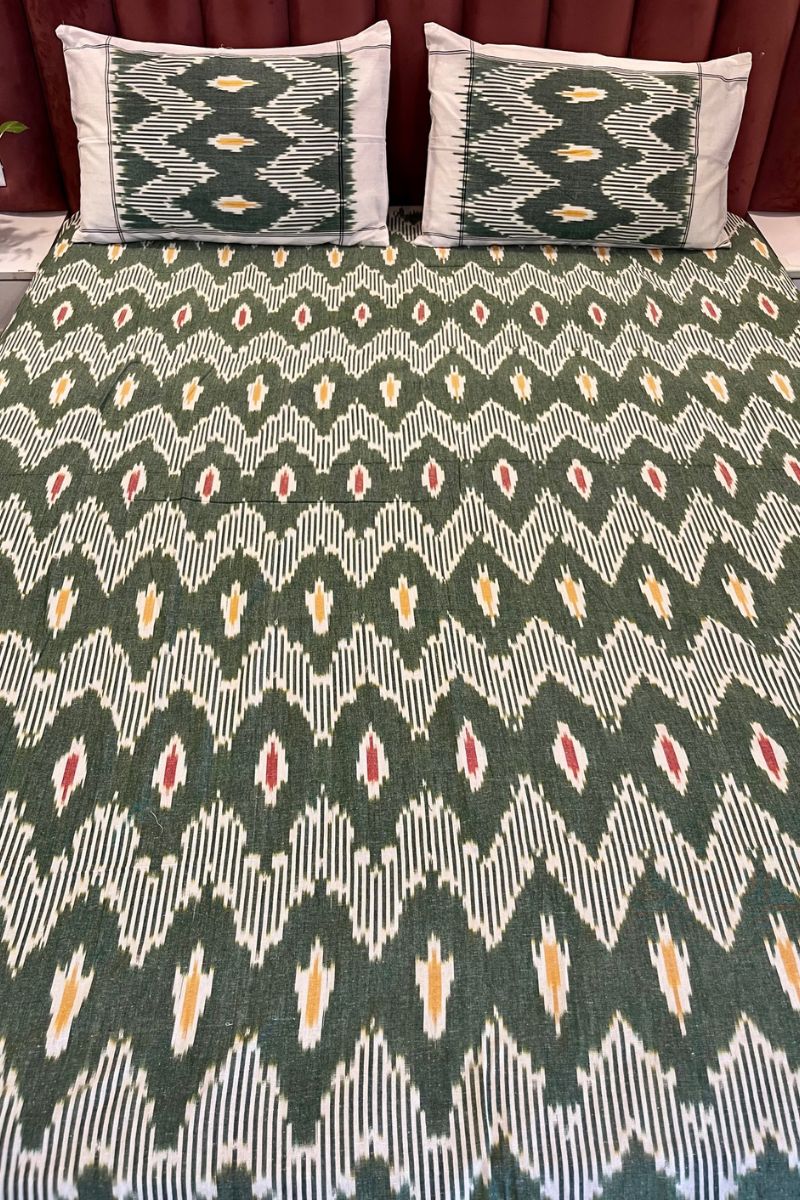 Green Ikat Double Bed Sheet (90X108)