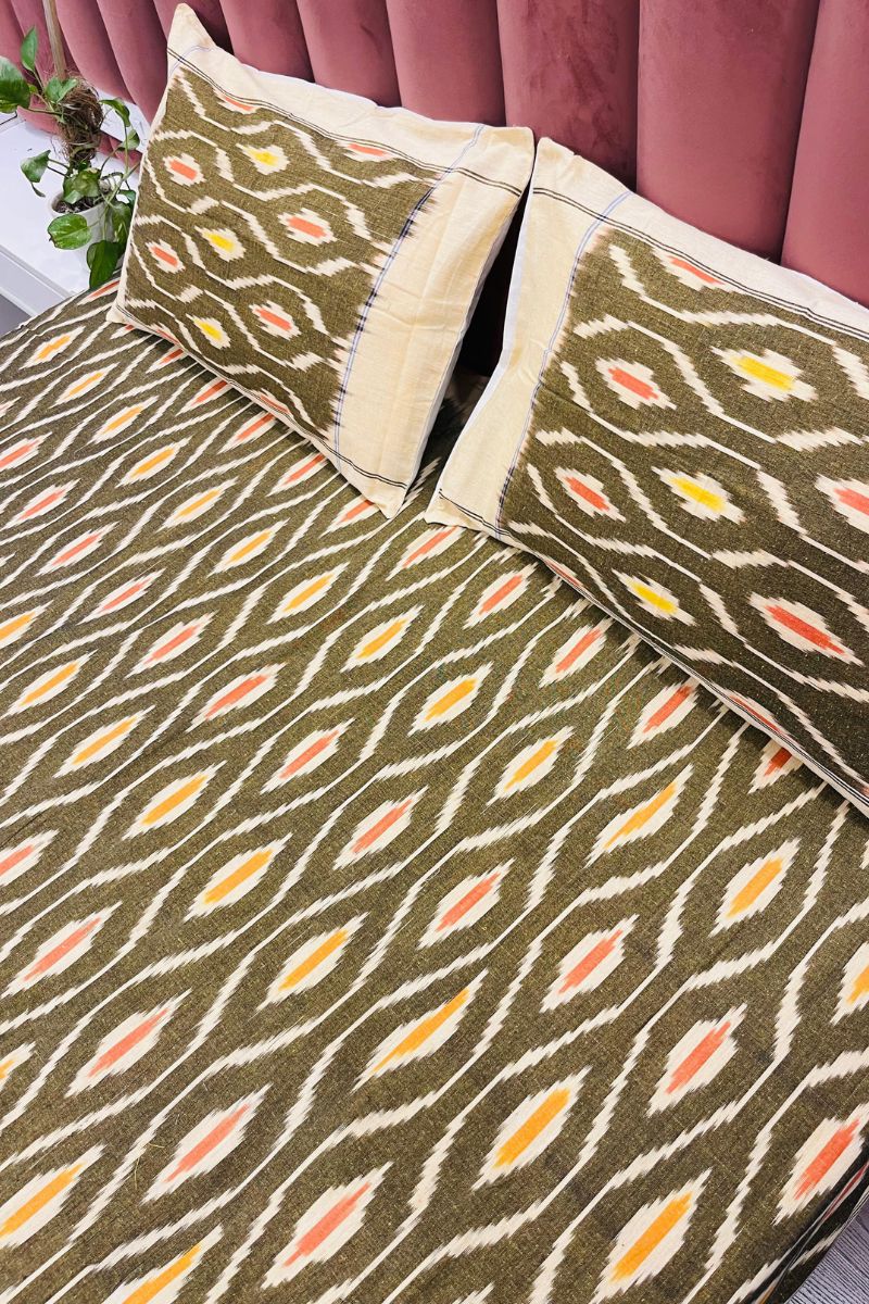 Olive Ikat Double Bedsheet (90X108)