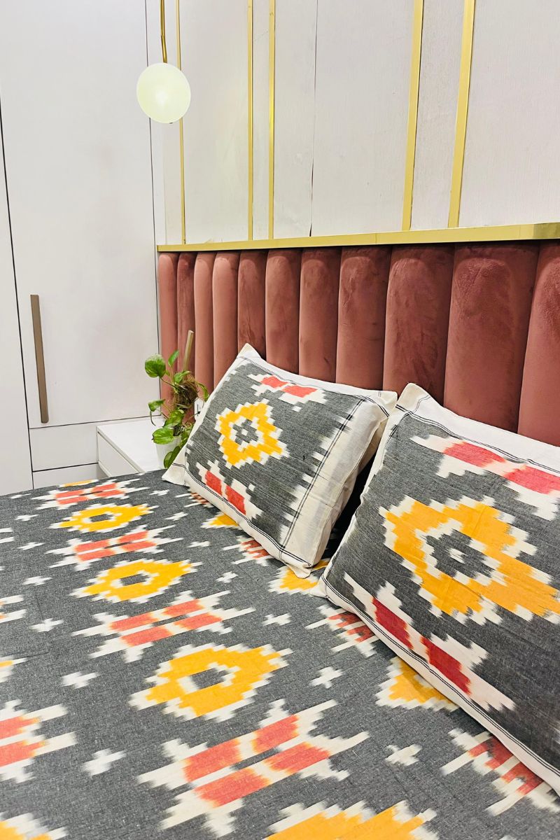 Grey Ikat Double Bed Sheet (90X108)