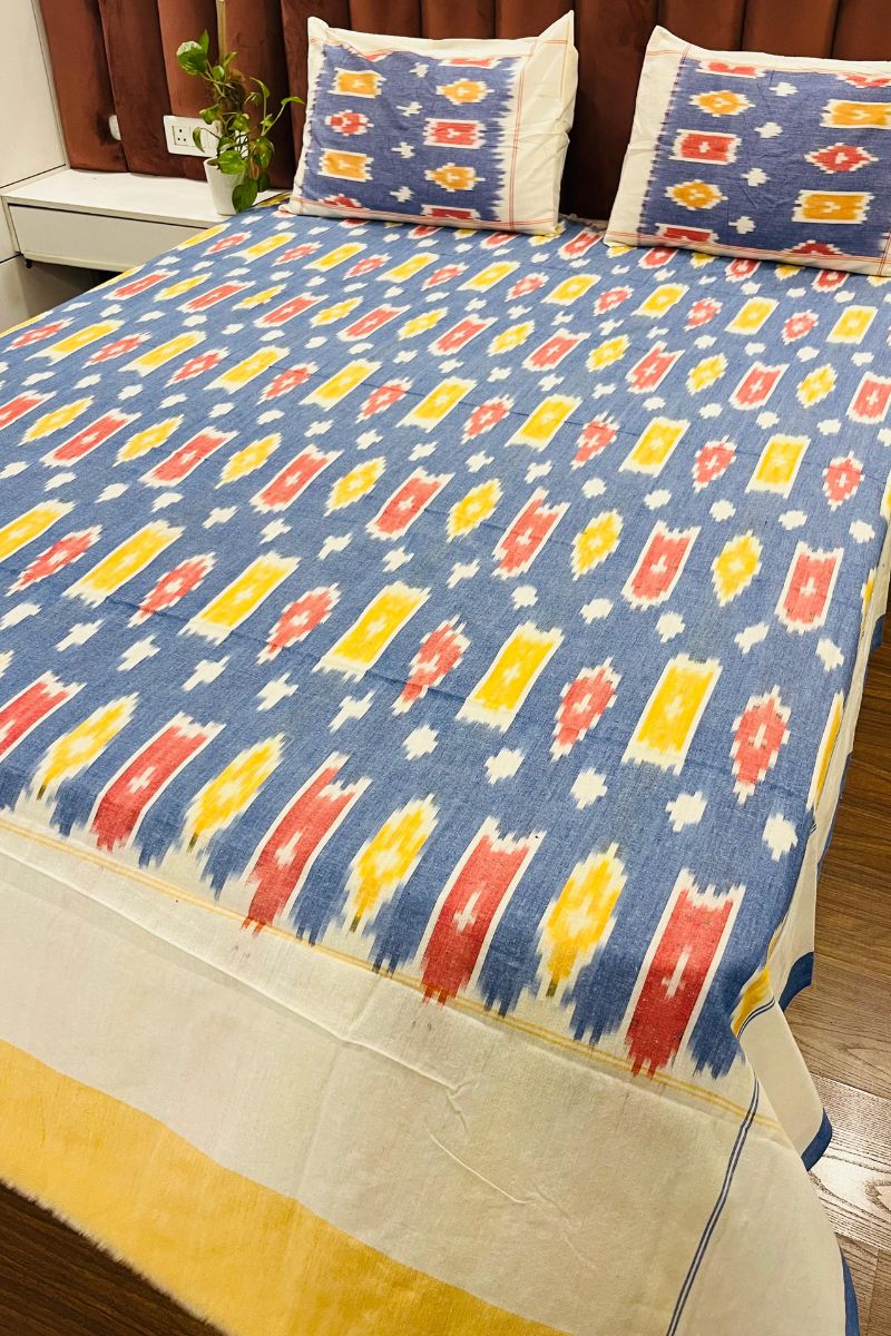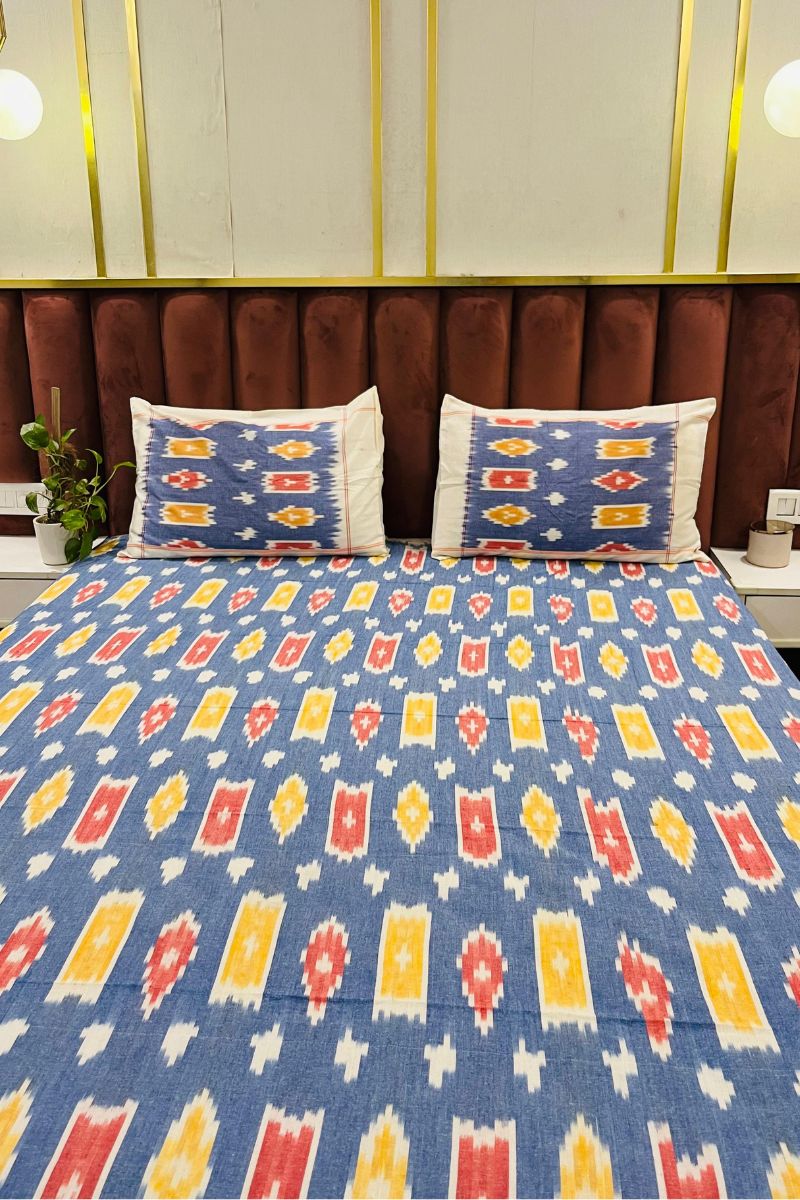 - Bring home the timeless charm of handcrafted elegance with our Ikat Double Bed Sheet with Pillow Covers. 100% cotton fabric woven using traditional Ikat techniques, this bed cover blends rich craftsmanship with modern minimalism.