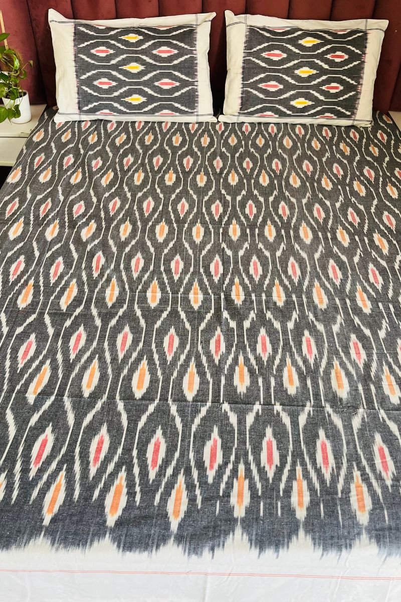 - Bring home the timeless charm of handcrafted elegance with our Ikat Double Bed Sheet with Pillow Covers. 100% cotton fabric woven using traditional Ikat techniques, this bed cover blends rich craftsmanship with modern minimalism.