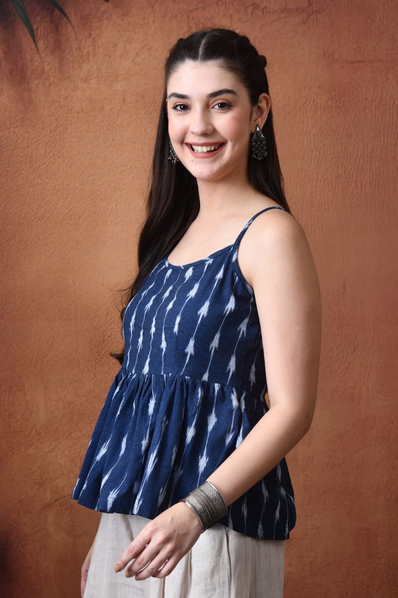 Navy Ikat Strappy Top