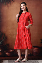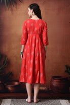 - Crafted in 100% cotton block print, with a contrast detailing on neck and buttons of the dress.