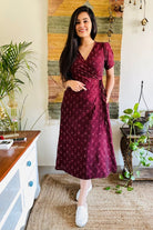 Wine Ikat Wrap Dress