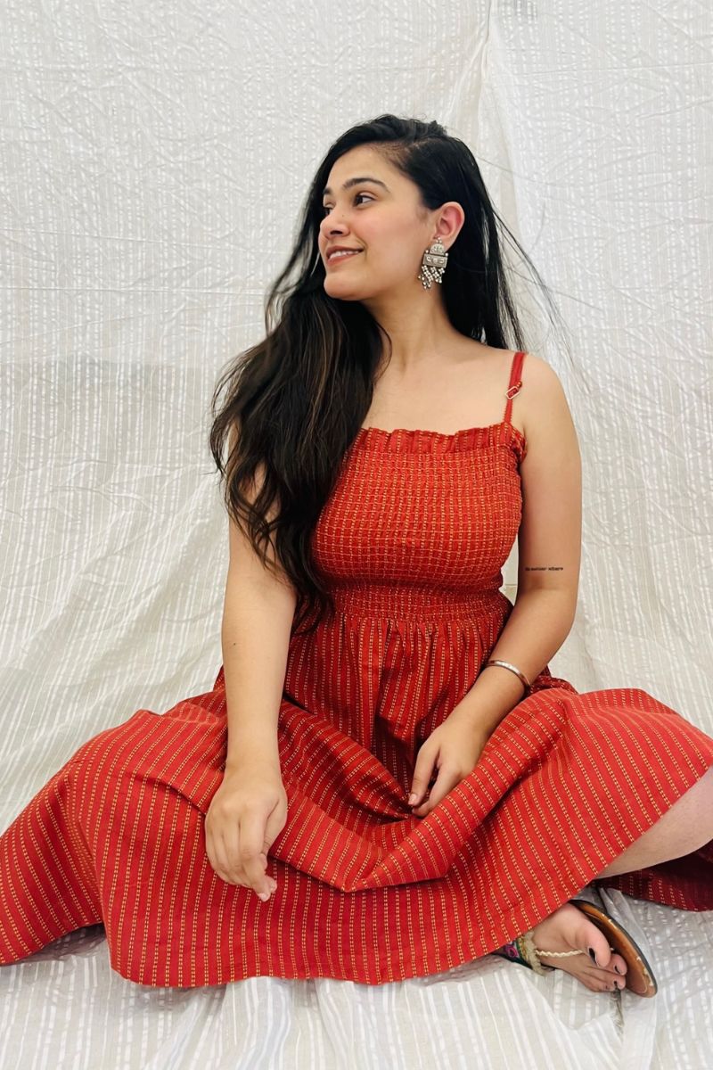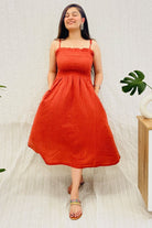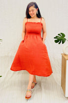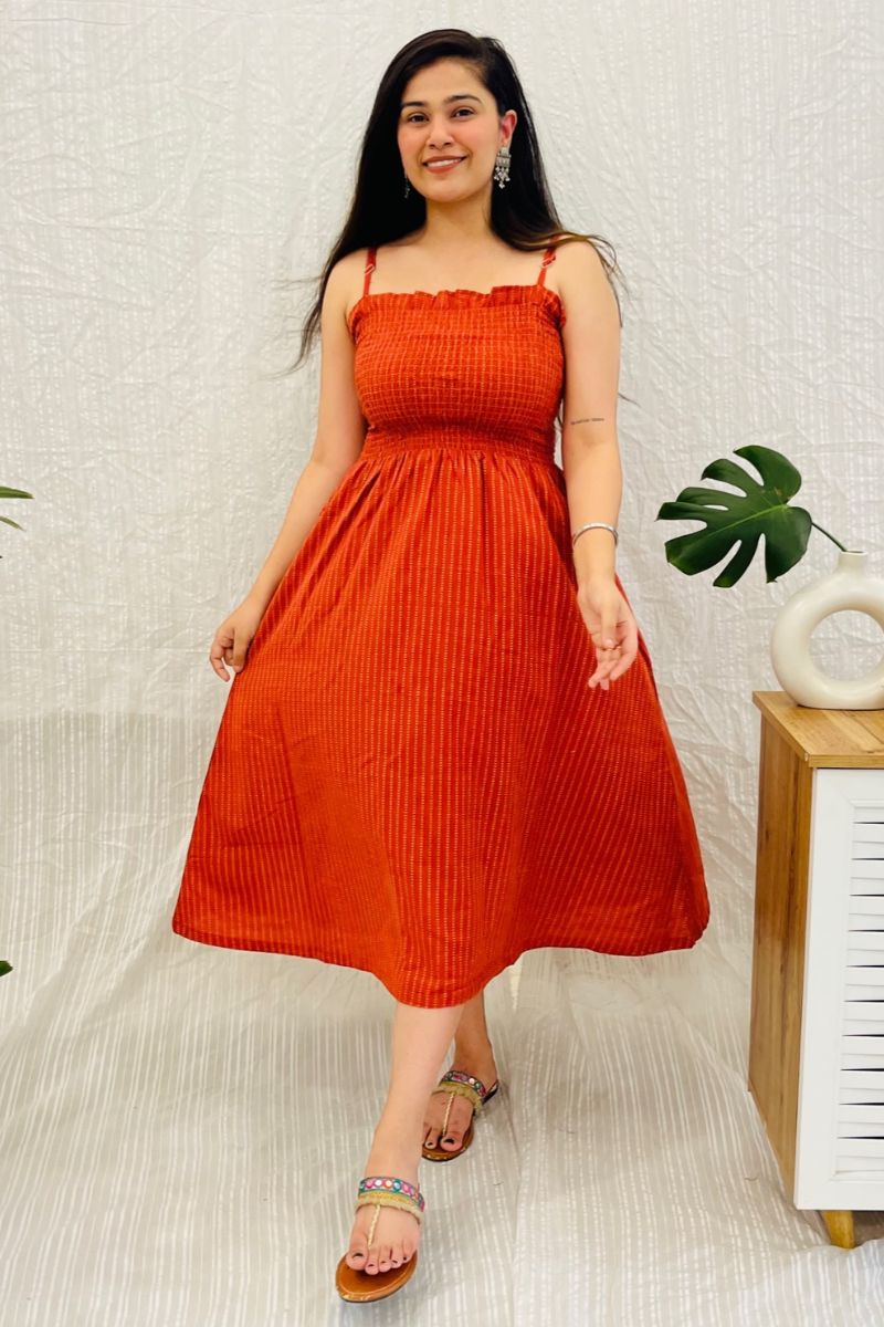 Burnt Orange Handloom Spaghetti Dress
