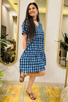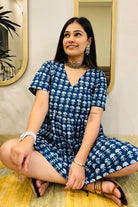 Indigo Block Print Flared Dress