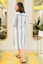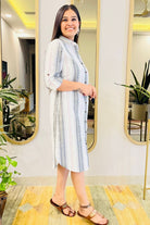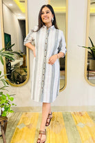 - Crafted in 100% cotton, the dress has a classic shirt collar and comfy fit silhouette with buttons down the center.