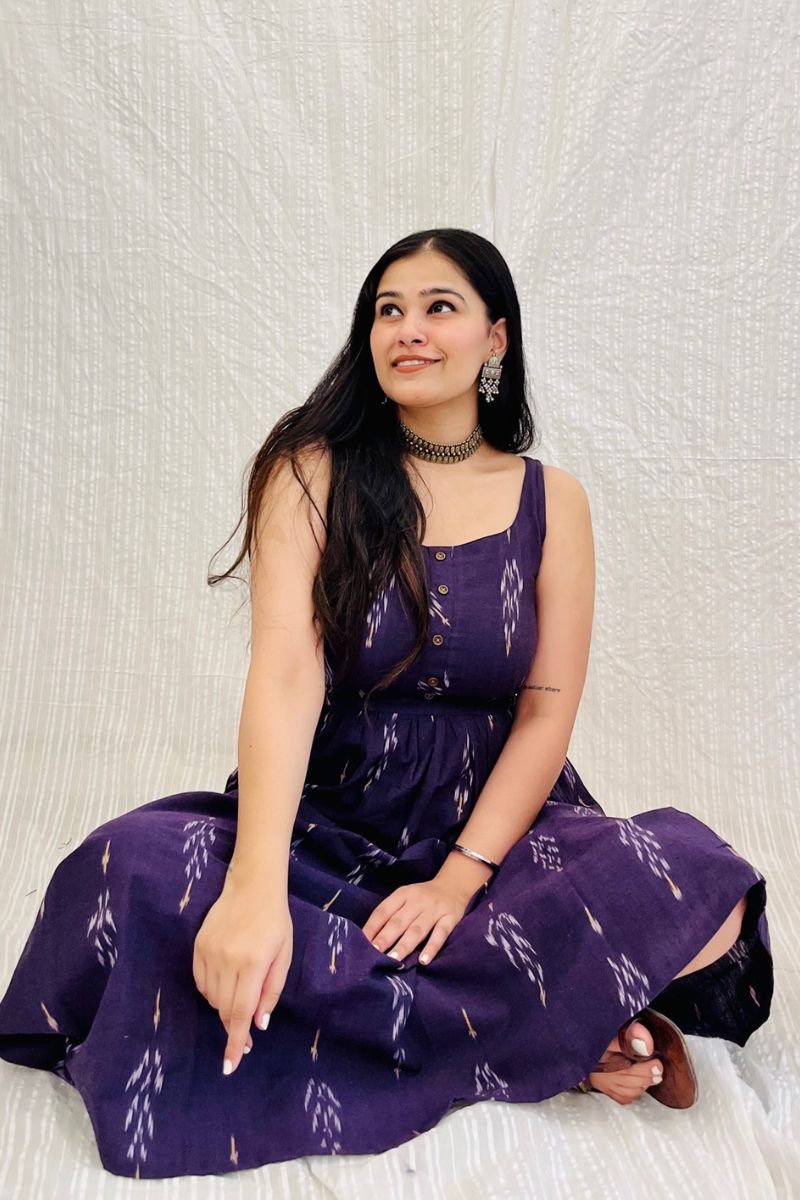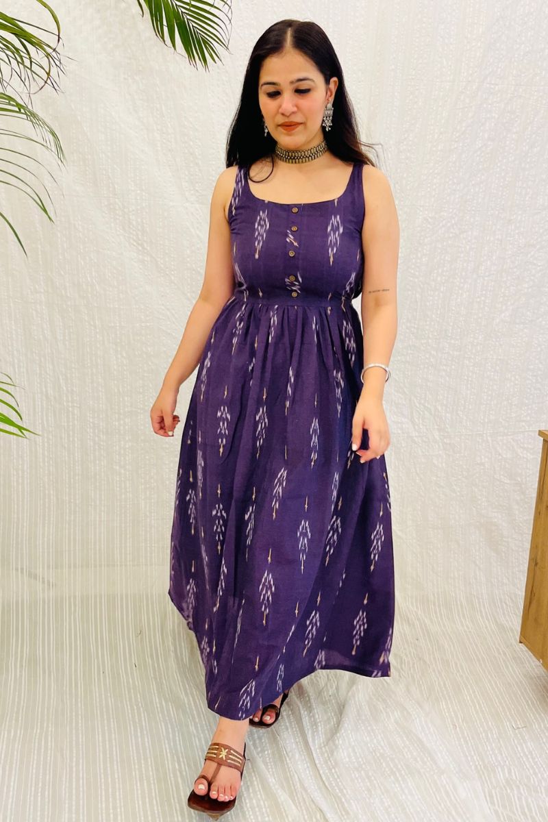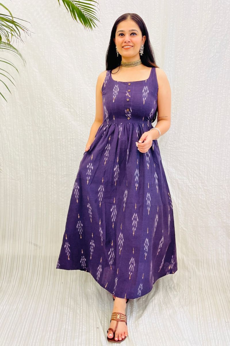 - Crafted in 100% cotton ikat dress, a perfect harmony of style and convenience for the modern woman with pockets on both sides.