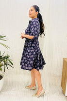 - Crafted in 100% cotton, the dress has a classic shirt collar and comfy fit silhouette with buttons down the center.