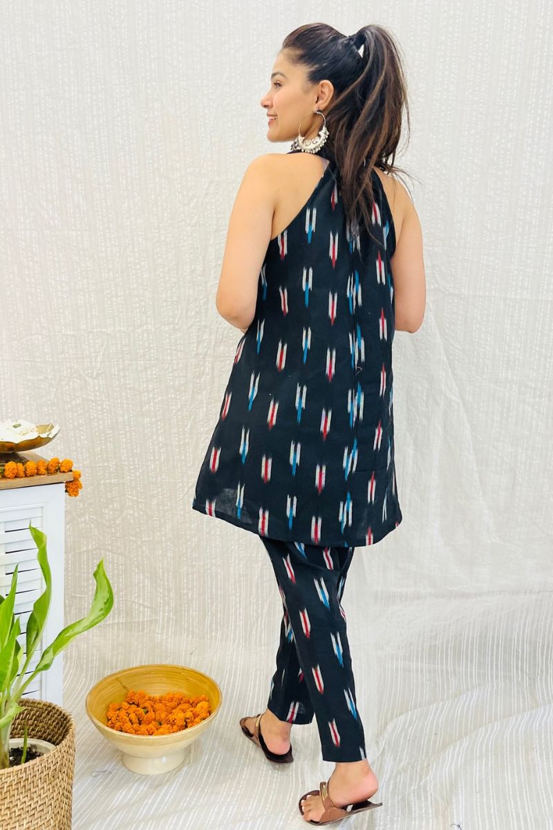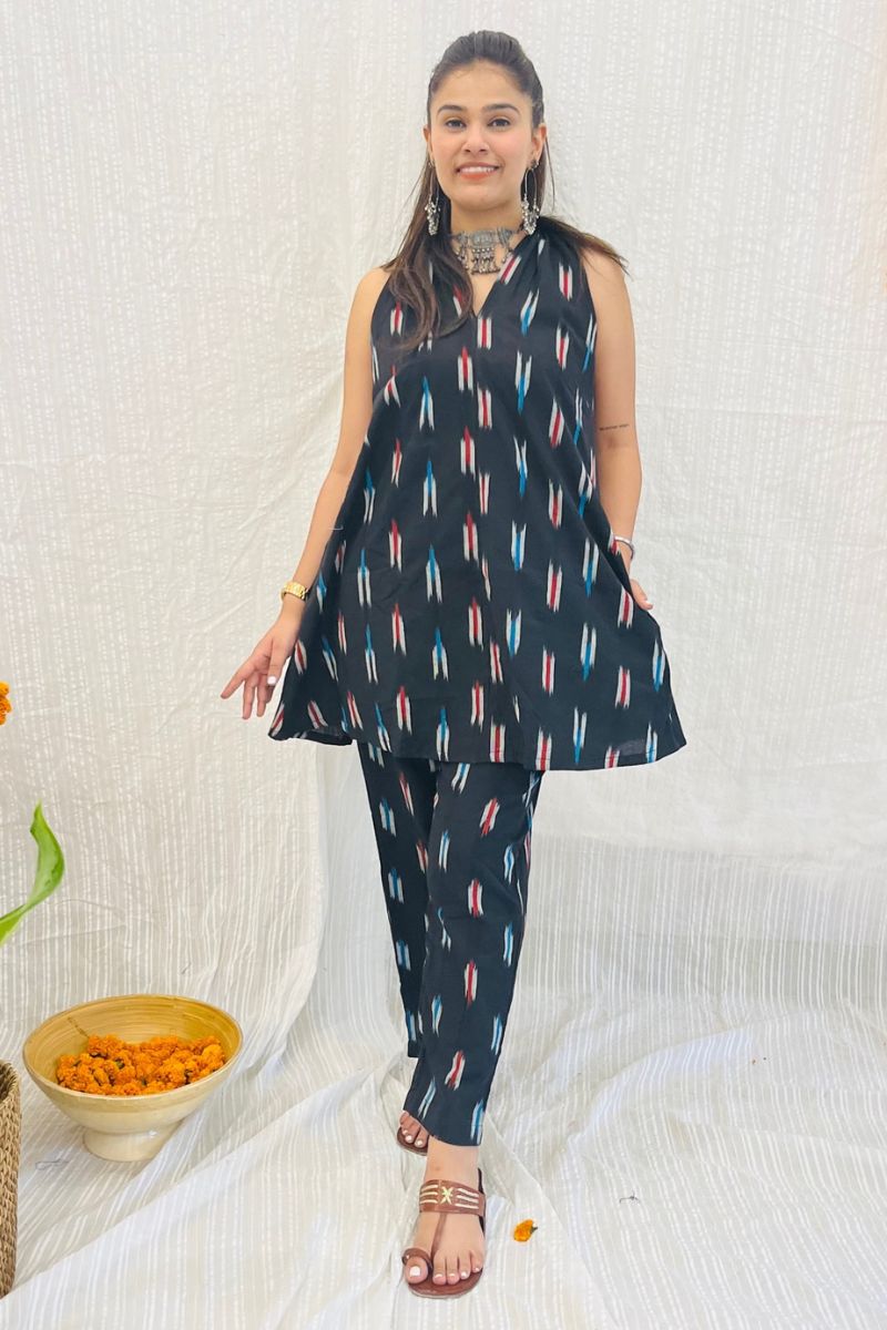 - Discover sophistication with our Black Ikat Co-ord Set. Indulge in the captivating charm of Ikat weave.