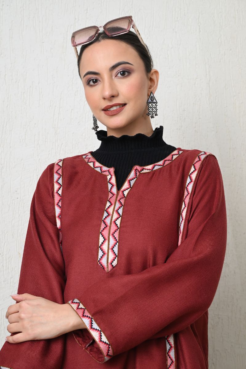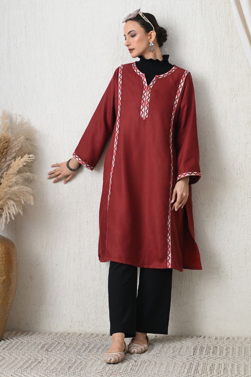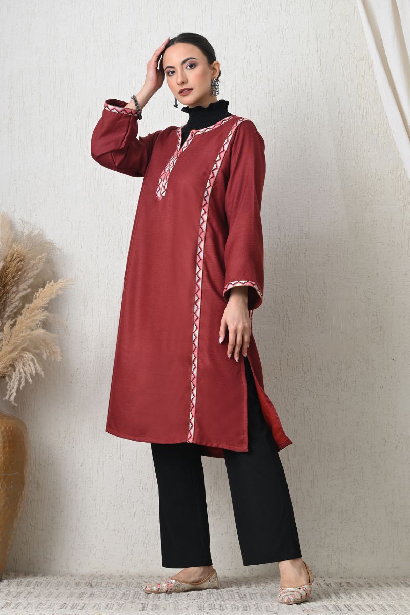 - Gul wraps you in the soulful embrace of traditional Kashmiri phiran styling adorned with intricate contrast lace detailing, designed to feel quietly luxurious.