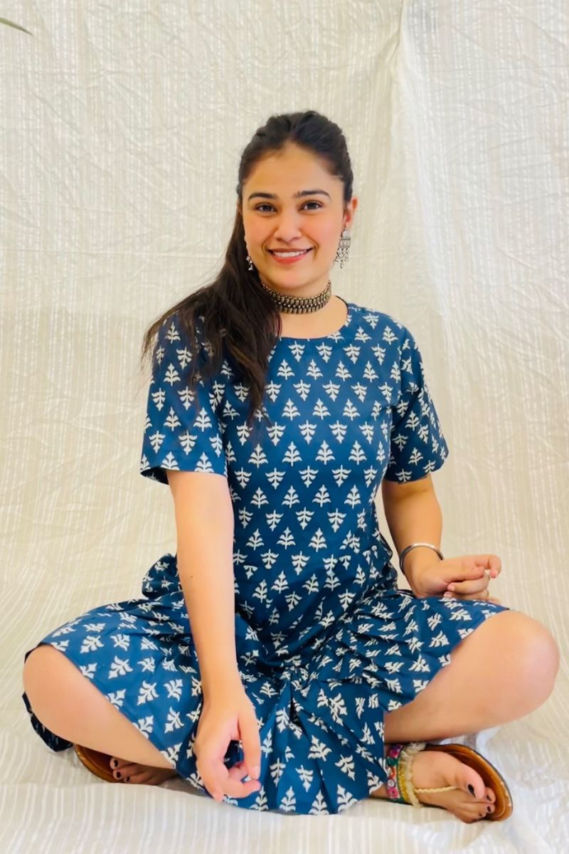 - Crafted in 100% cotton, the dress has a classic round neck and comfy fit silhouette with buttons on the back.