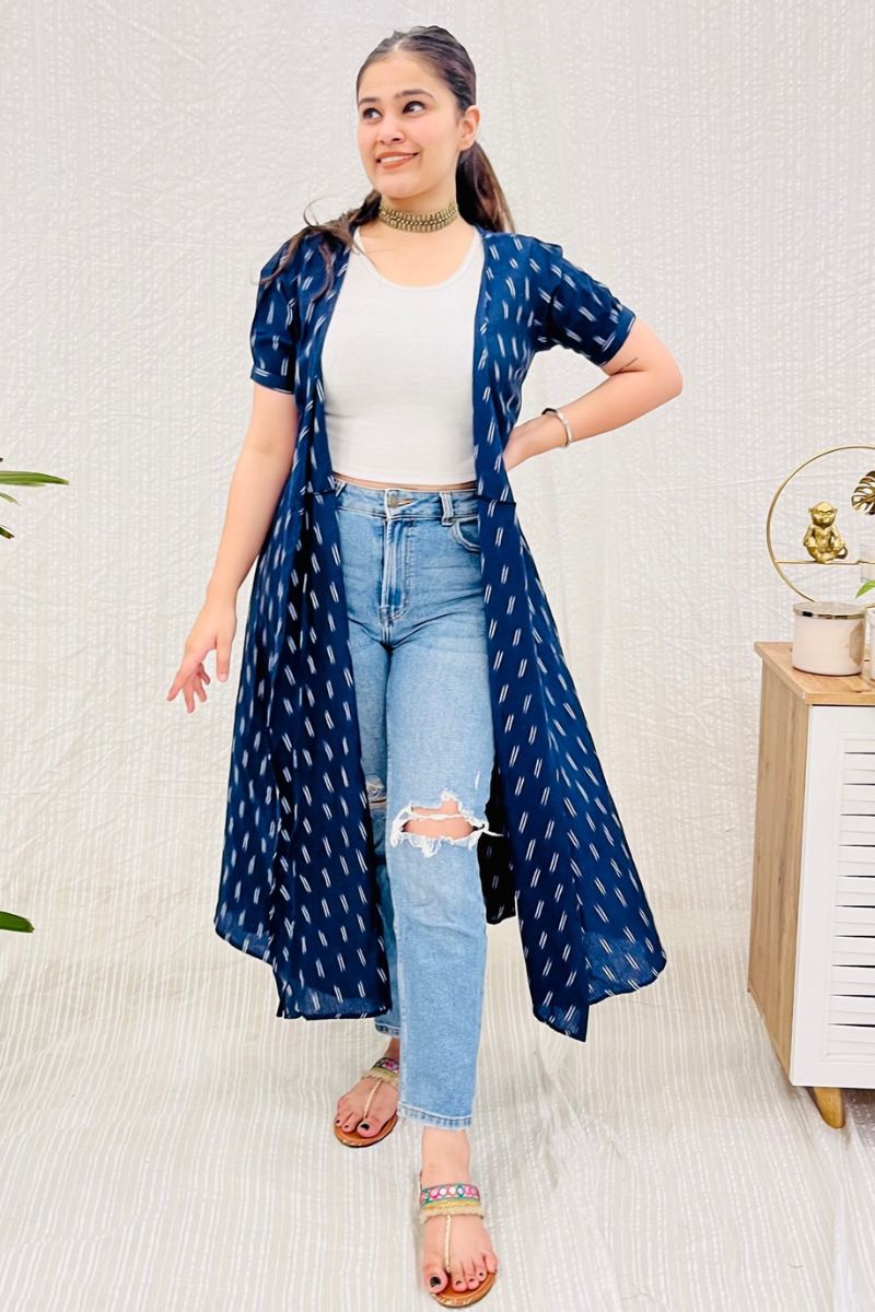 - Crafted in 100% cotton Ikat, work it as an overlay or wear as-is; whichever way you like it.