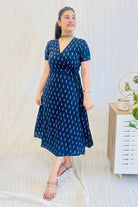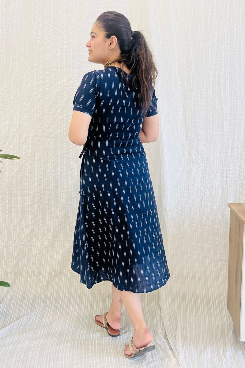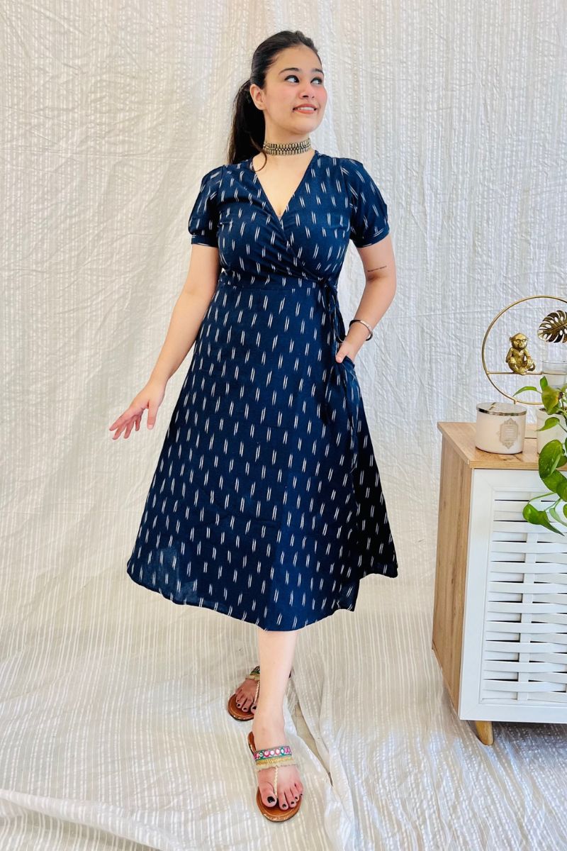 Navy Ikat Wrap Dress