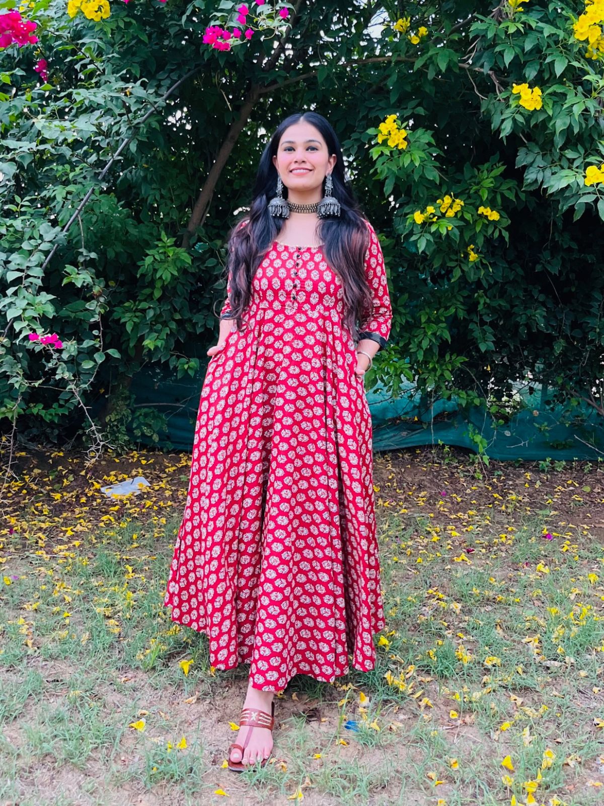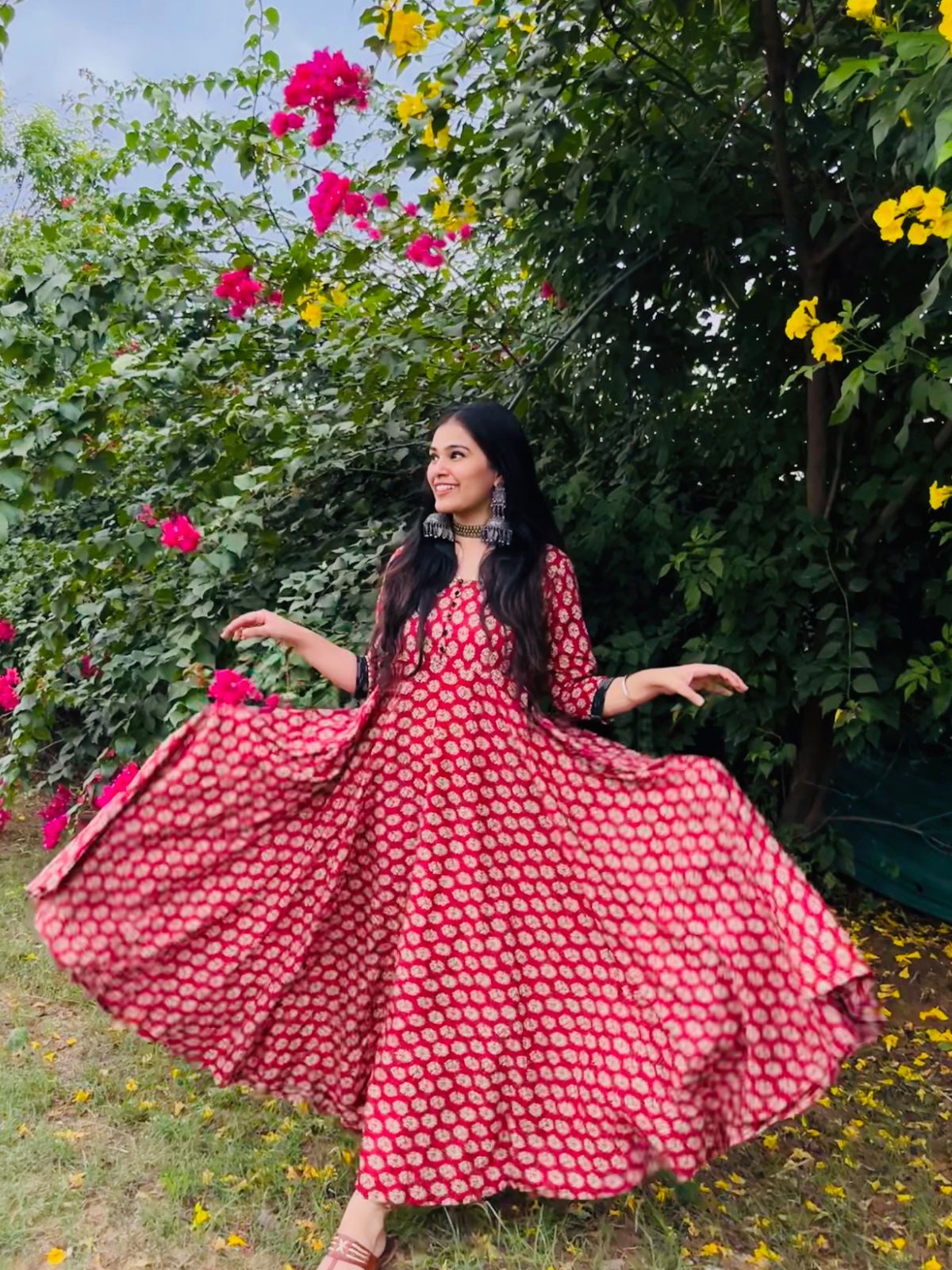 Rust Block Print Twirl Dress
