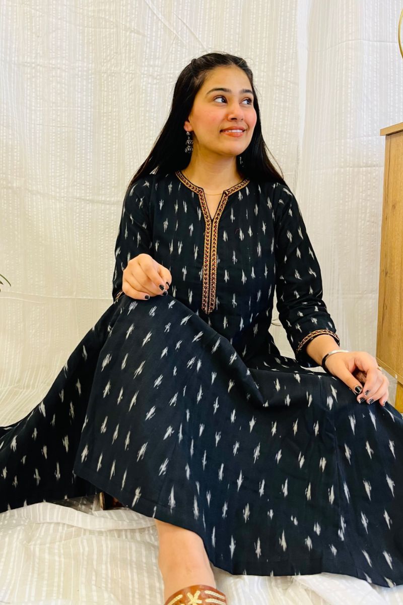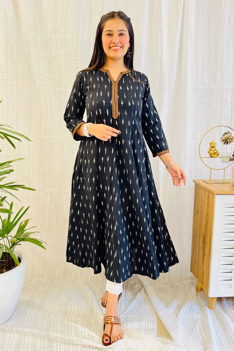 - This ikat beauty is what you've been missing, enhanced with kalis and lace detailing this long kurta is an ethnic wardrobe essential.