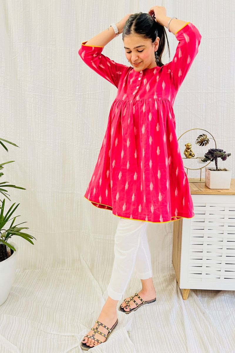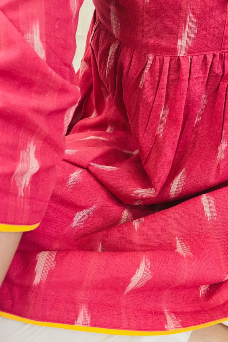 - The dress has a round neck with contrast detailing on inner side of hem and sleeves