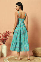 - Crafted in 100% cotton, the dress comes with a sweetheart neck and tiered flare grazing the legs.