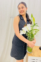 - Crafted with intricate Schiffli embroidery, this dress exudes timeless charm and effortless grace, making it a versatile addition to your wardrobe..