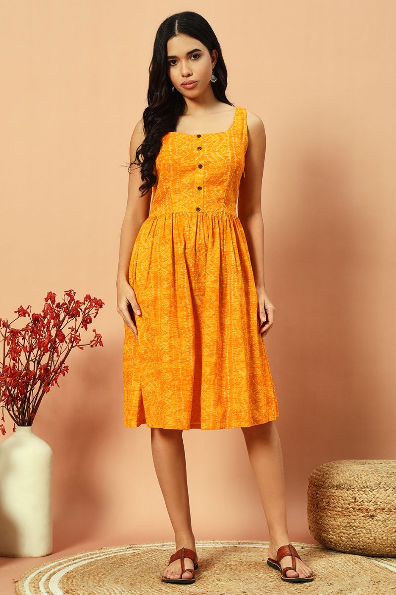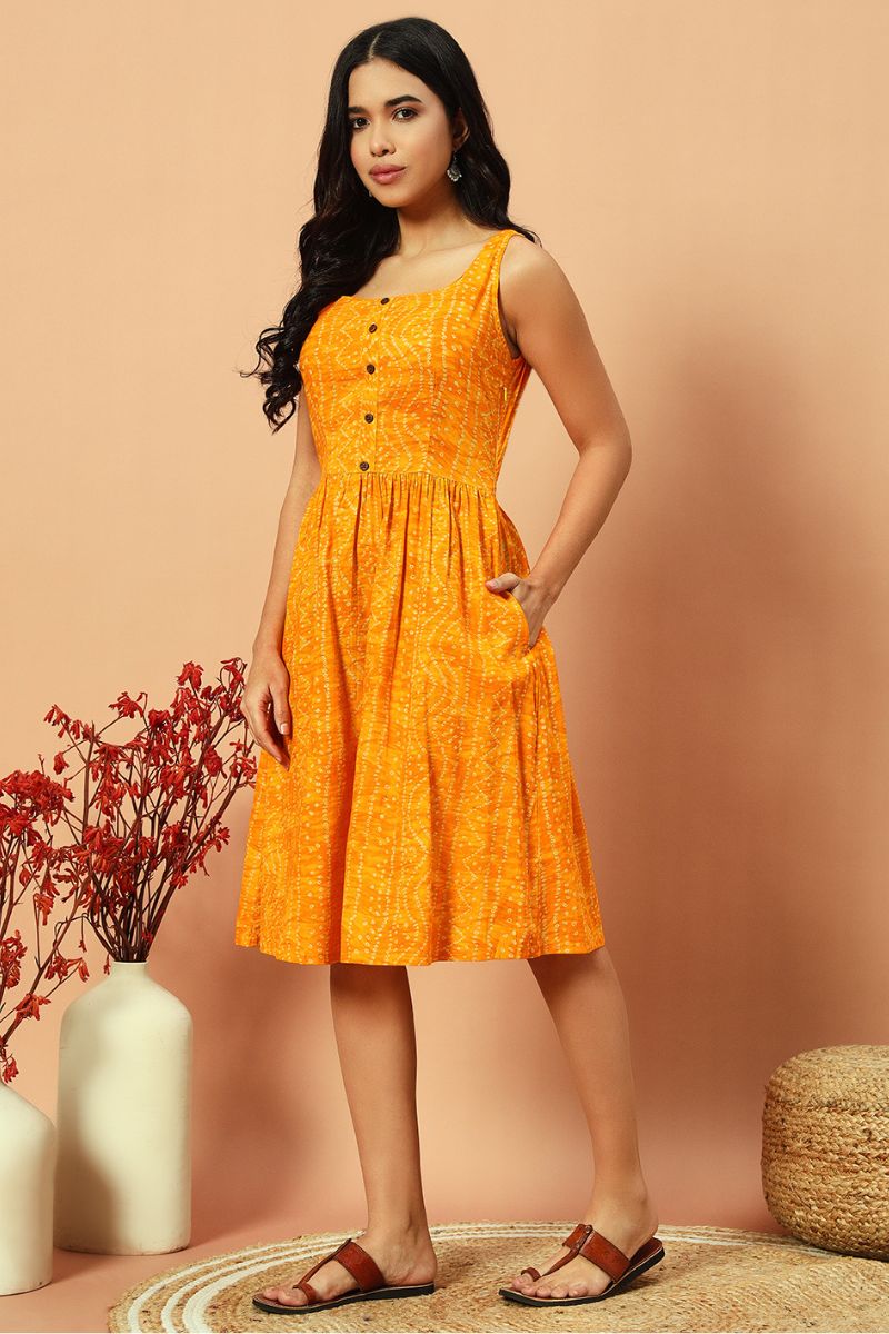 Sunshine Bandhani Fit And Flare Dress
