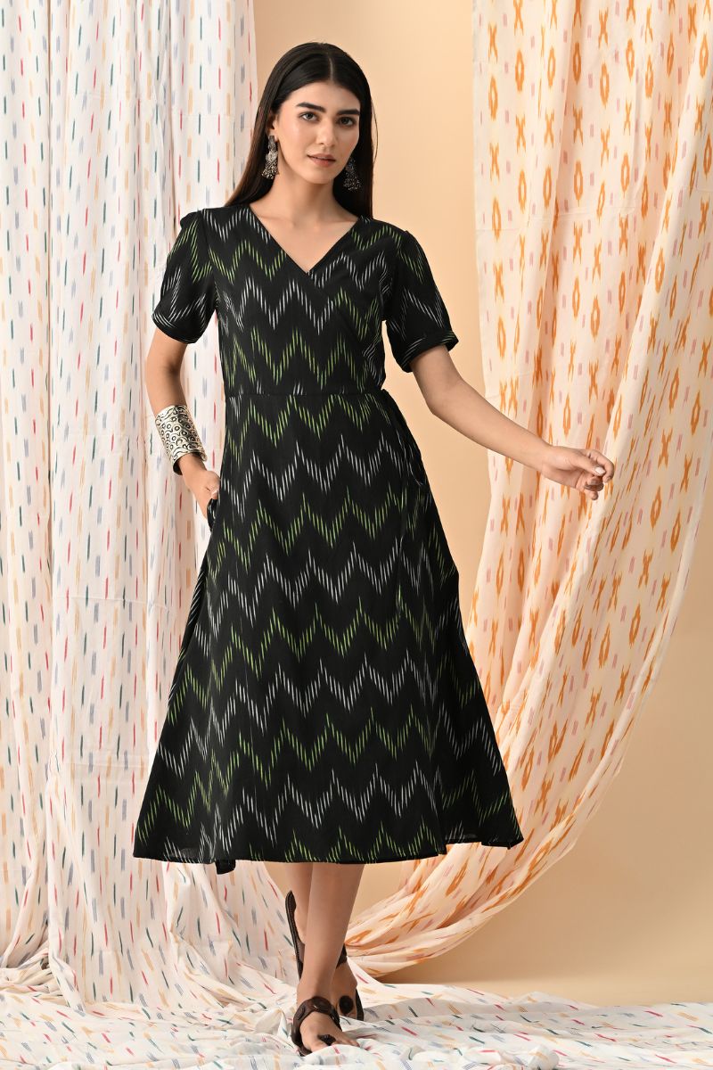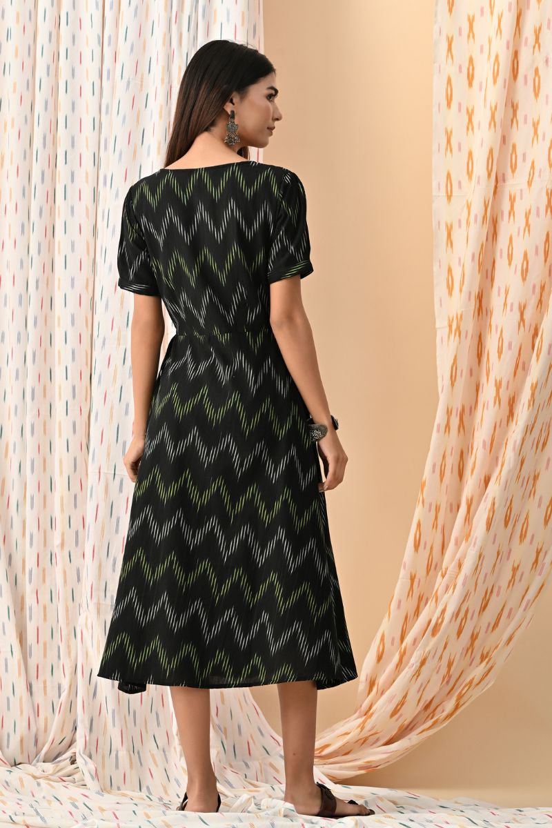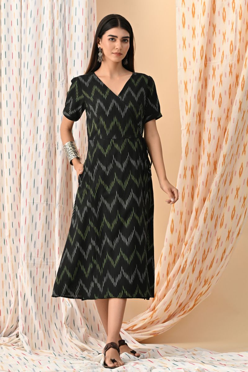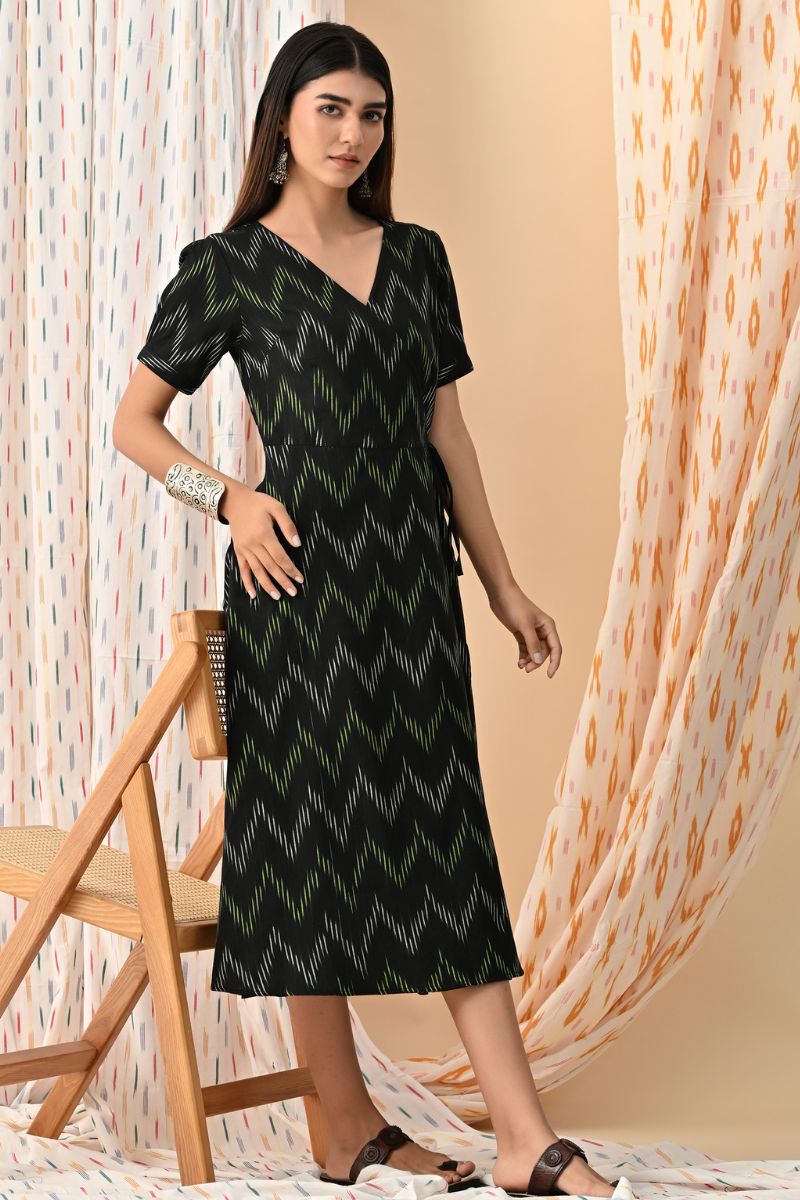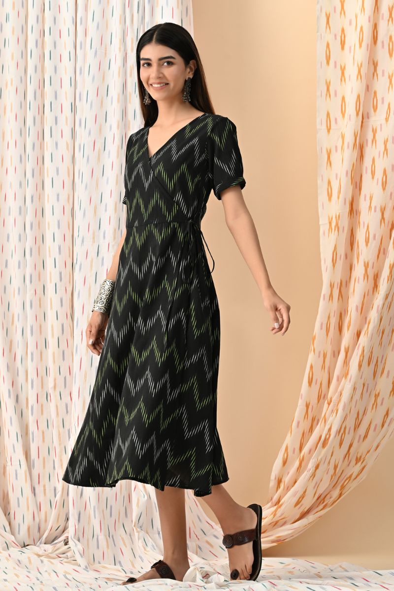 Black Ikat Wrap Dress