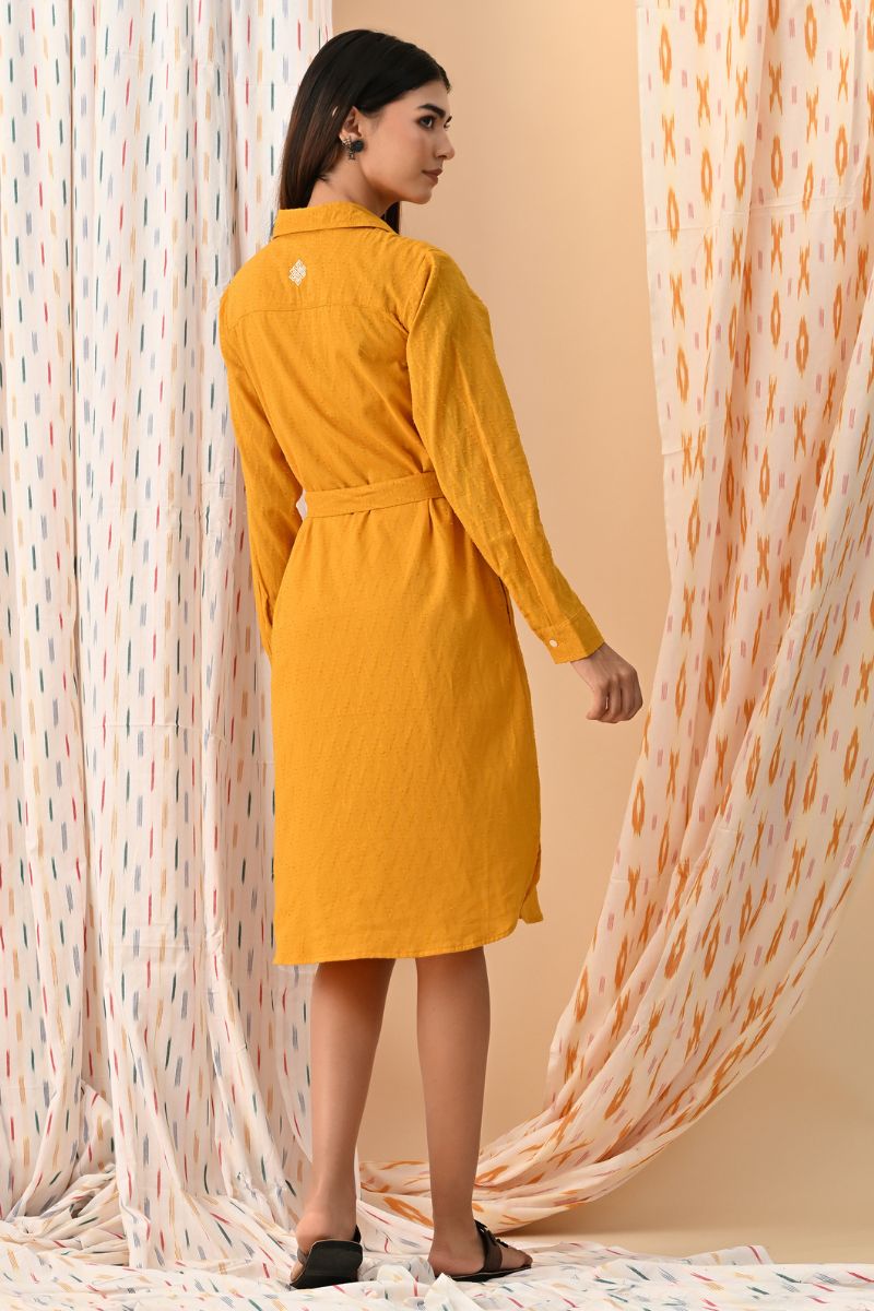 - Crafted in 100% cotton, the dress has a classic shirt collar and comfy fit silhouette with buttons down the center and embroidery detail on the back.