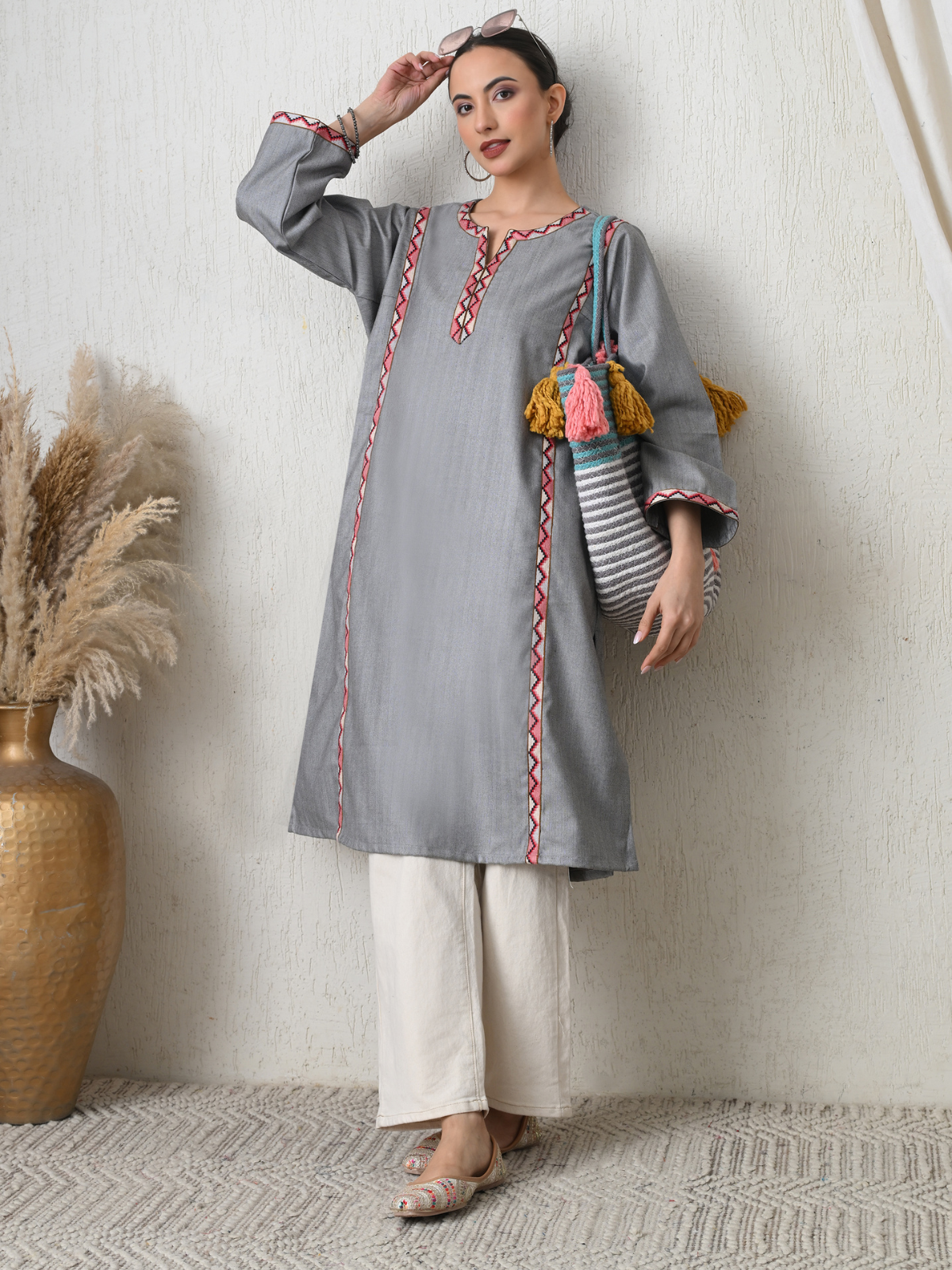 - Elegant as mist settling over Gulmarg meadows, Fizza embodies understated luxury through its refined phiran silhouette and subtle contrast lacework accents.