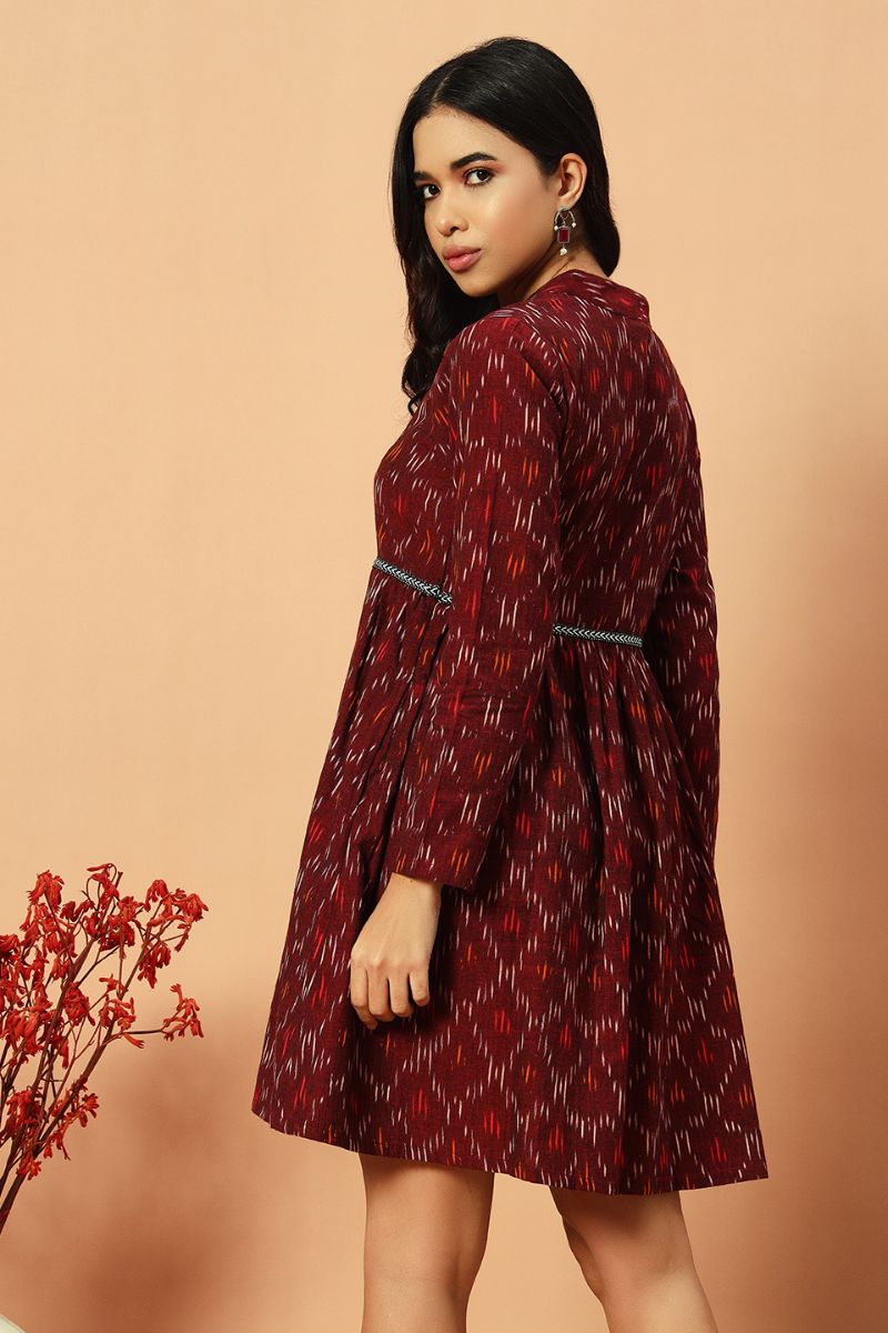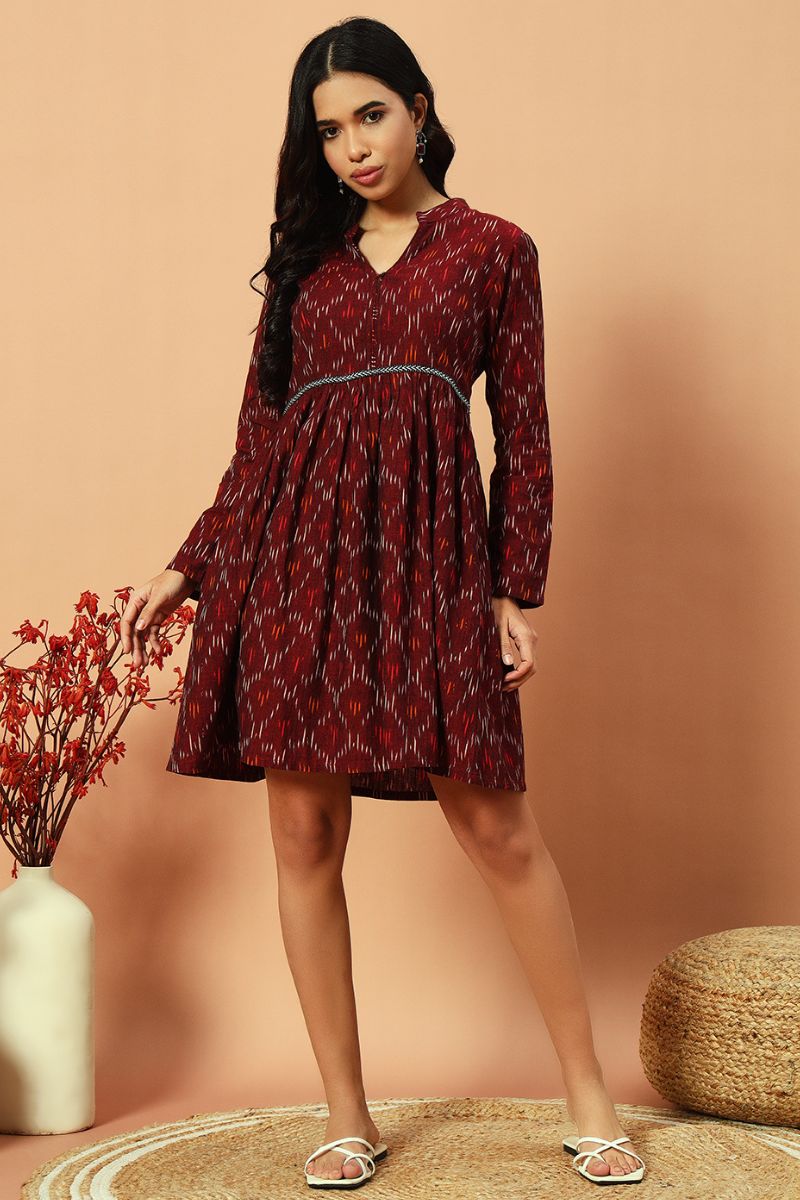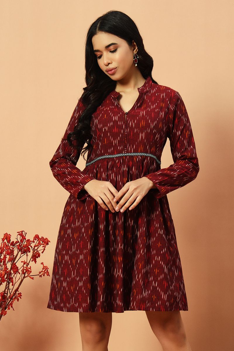 - Elegant ikat fabric in fit and flare silhouette makes this dress uber cool and cute knee length for a day out.